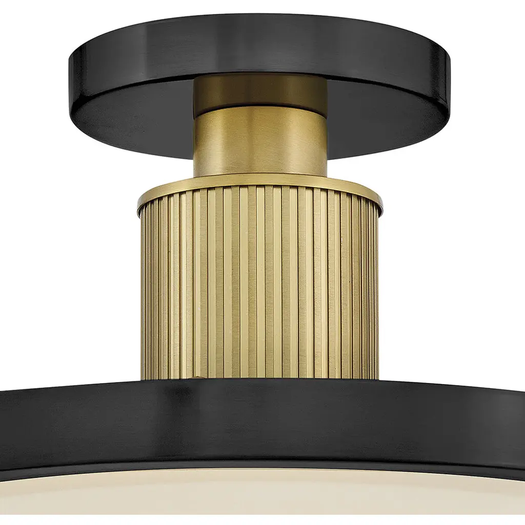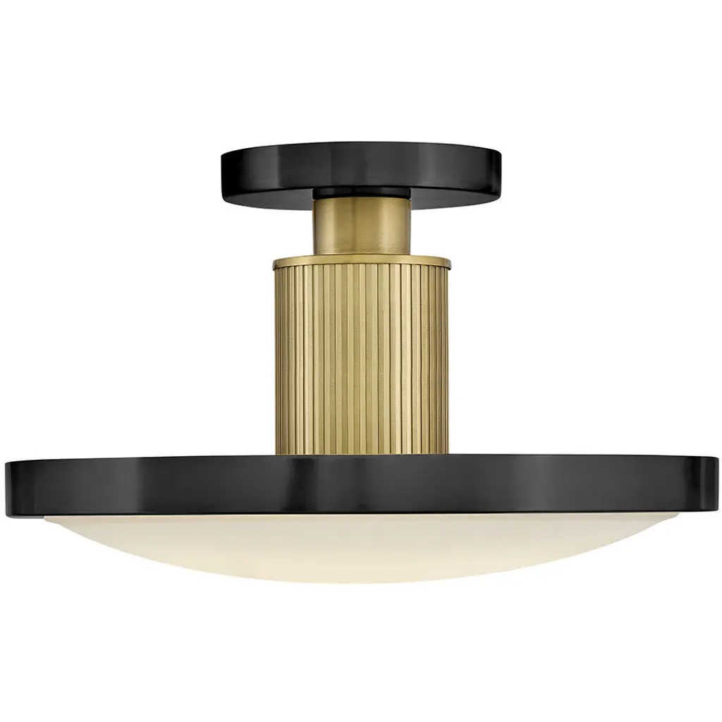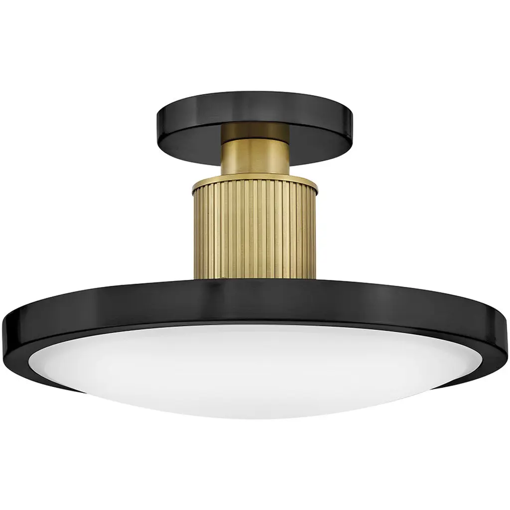 Kieran Led 14.25 Inch Black And Lacquered Brass Semi-Flush Mount Ceiling Light In Black With Lacquered Brass