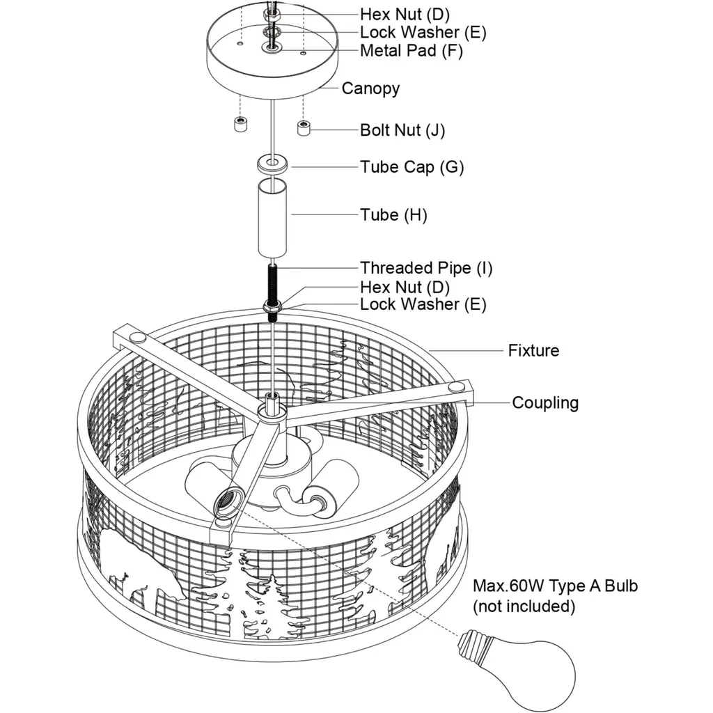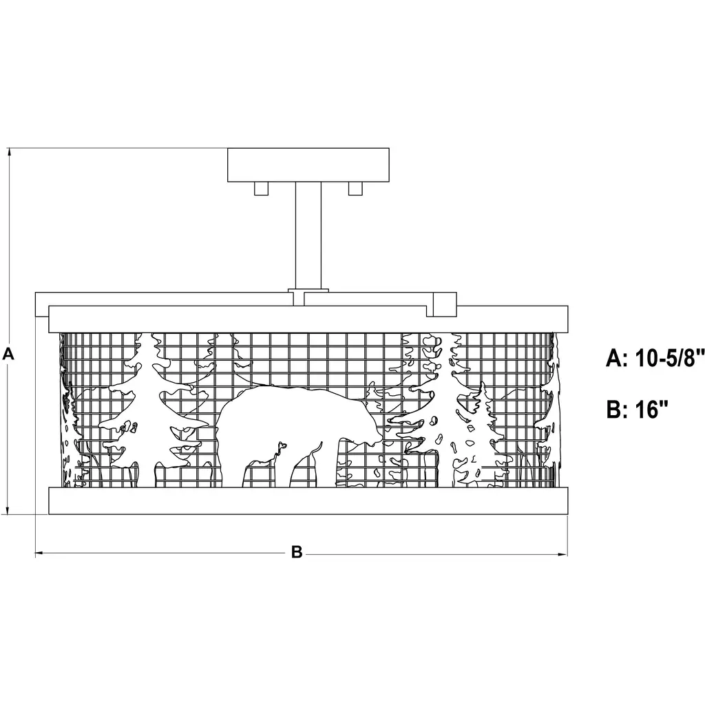 Get wild with this drum style ceiling light called Kodiak. The pairing of the black and burnished teak finish enhances the on-trend metal cage perfectly. Capture your love of nature with pine tree and bear silhouettes. It is an excellent choice for a vacation lodge, cabin or suburban home and complements a variety of home styles: anywhere you want to bring an element of nature. Rated for damp locations, it can be used in any bathroom, family room, or any other area of your home.