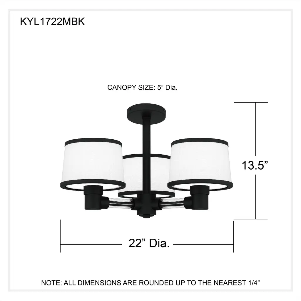 Kylen 3 Light 22 Inch Matte Black Semi-Flush Mount Ceiling Light