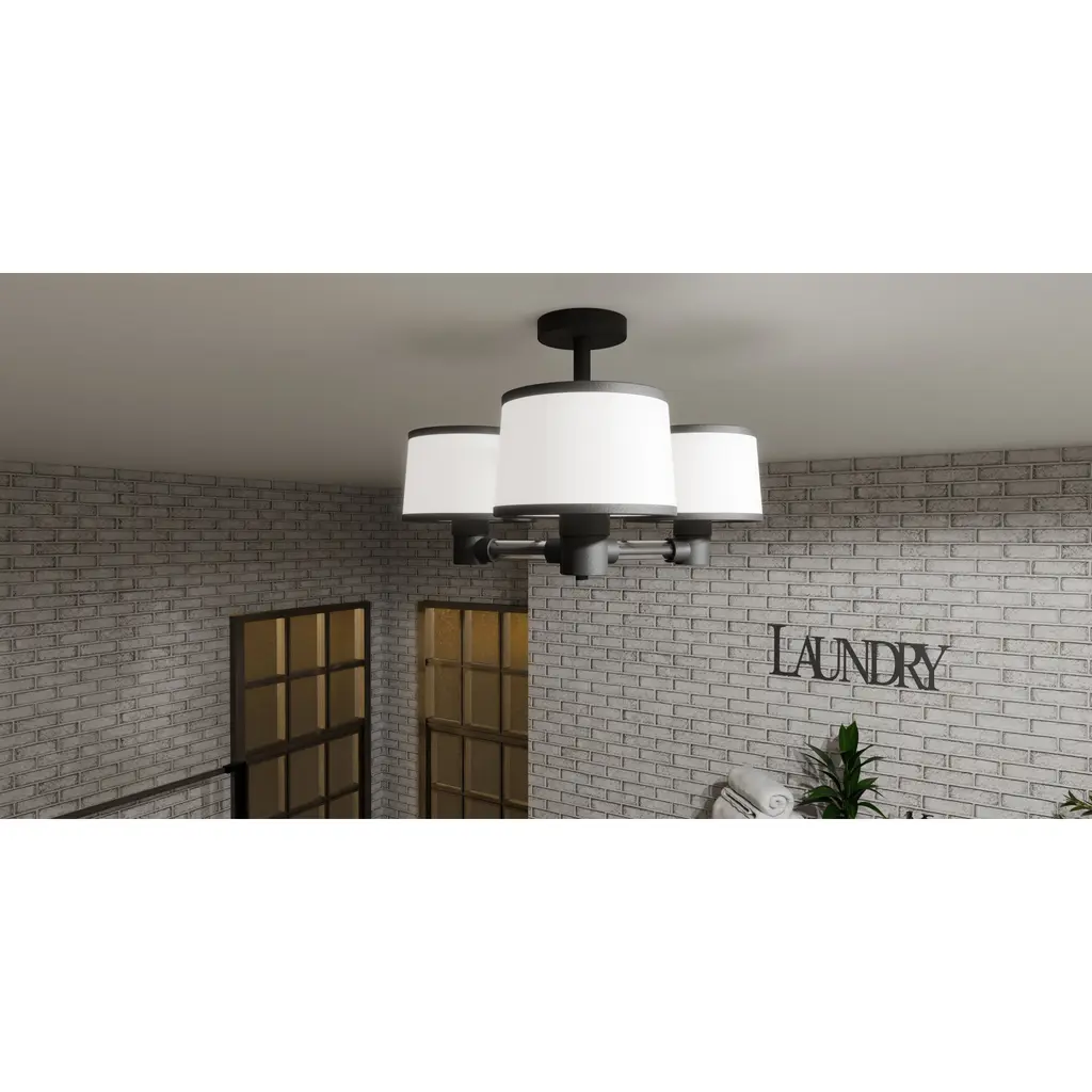 The Kylen collection is classic with a modern spin. The drum shades feature an egg-shell fabric with contrasting black accents along the edges, while a matte black finish enhances the overall look. Available as a semi-flush mount, pendant, or island light, Kylen offers versatile styling in any space.