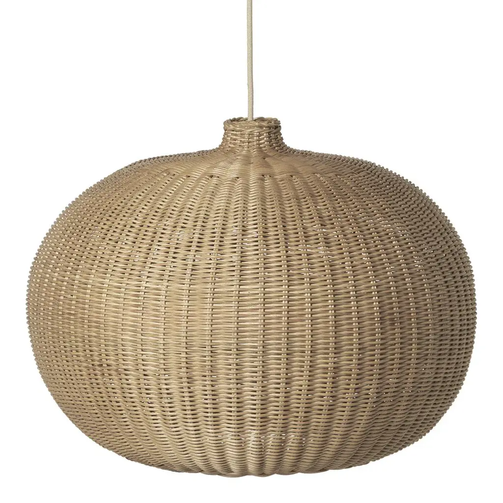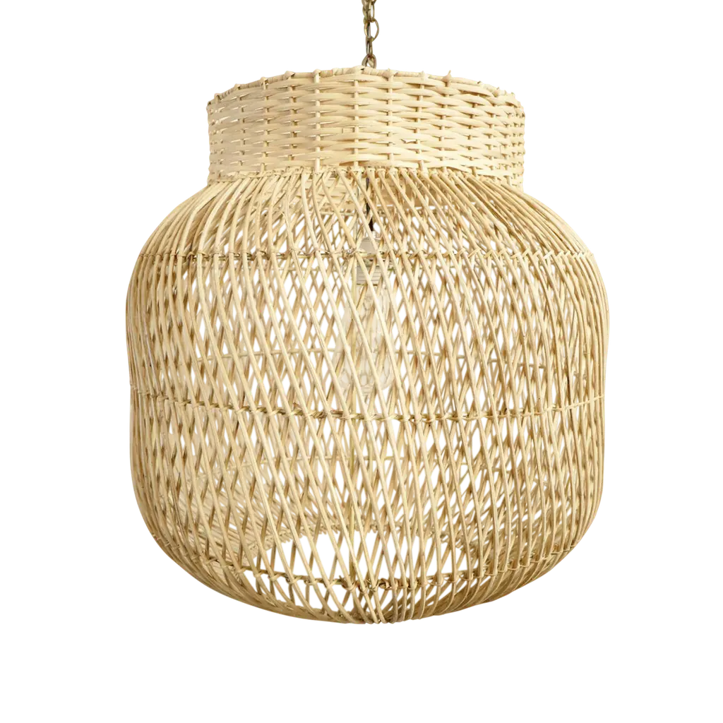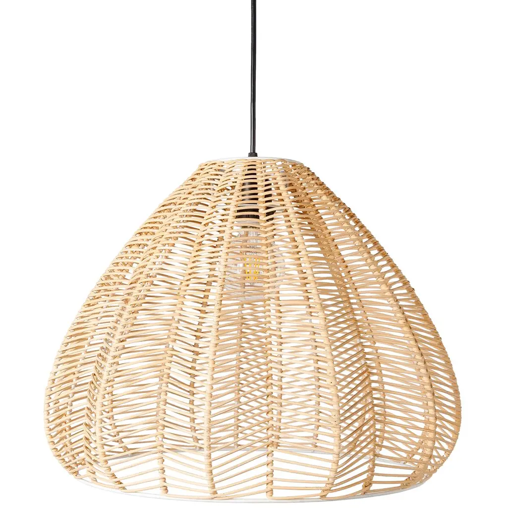 The Kylo Semi-Flushmount from Troy Lighting creates lively visual patterns through its multi-layered construction. A large rattan dome covers a smaller conical shade, generating intriguing shadows when illuminated. Light filters through the intricate weaving, projecting mosaic-like patterns onto surrounding walls. Small rattan ties at the bottom add authentic finishing touches to this naturally-inspired fixture. The open weave design allows for gentle illumination while maintaining the fixture's distinctive character. Handcrafted from natural materials, each fixture possesses unique variations that celebrate artisanal workmanship. Its organic aesthetic brings warmth and texture to interiors.