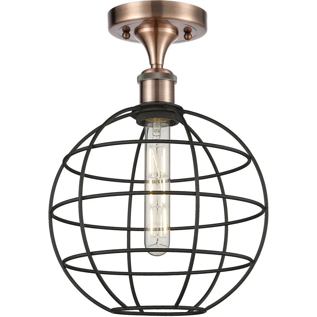 Ballston Lake Placid - 1 Light 10" Semi-Flush Mount - Satin Nickel Finish - Matte Black Shade