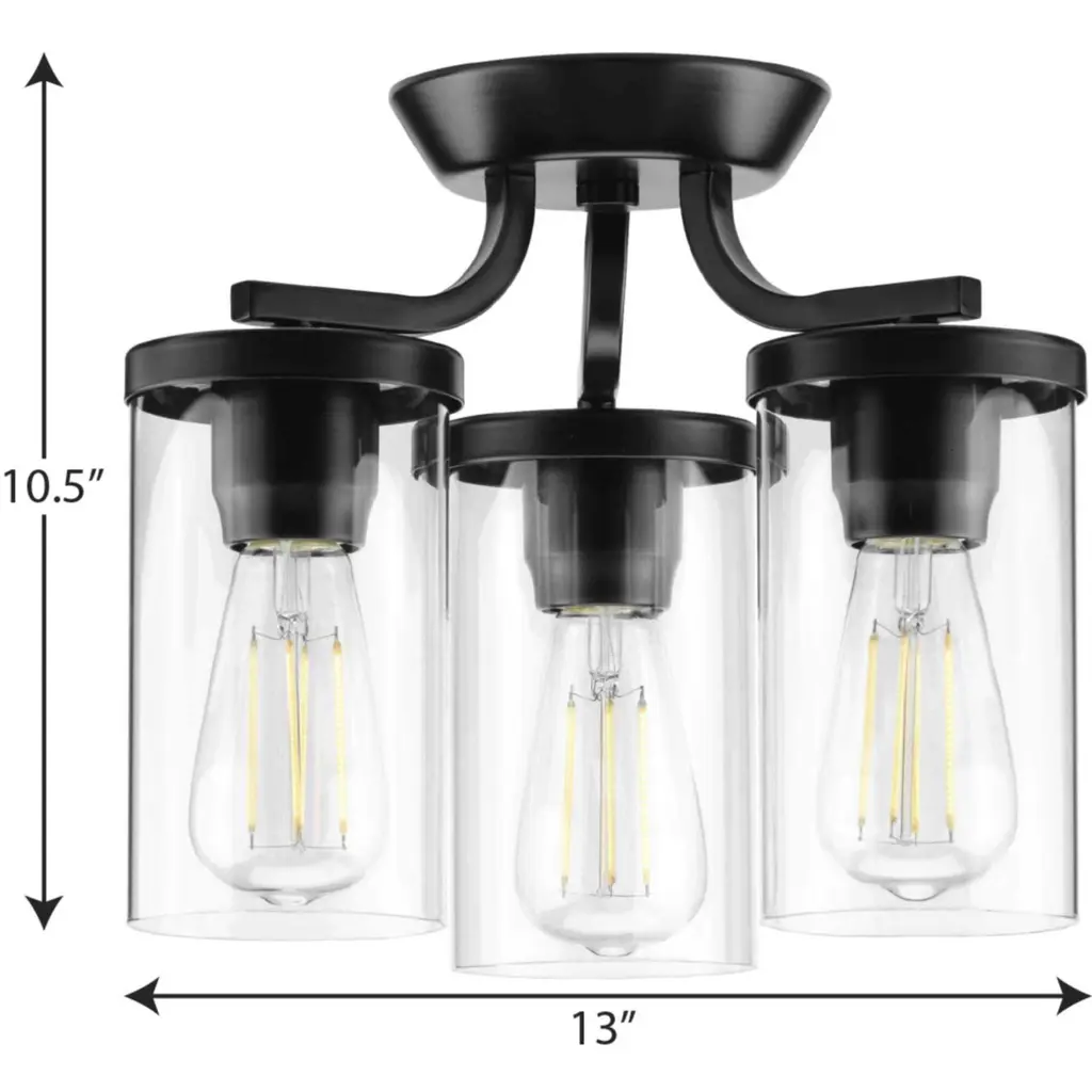 Manifest a swoon-worthy lighting experience with the stunning blend of modern and traditional styles in this one-of-a-kind semi-flush mount. Square tubing with clean, sharp angles demand your attention and appreciation. A beautiful black finish coats a handsome rectangular backplate. Striking vintage light sockets boast their bold yet simple demeanors within the safety of sophisticated clear glass shades.