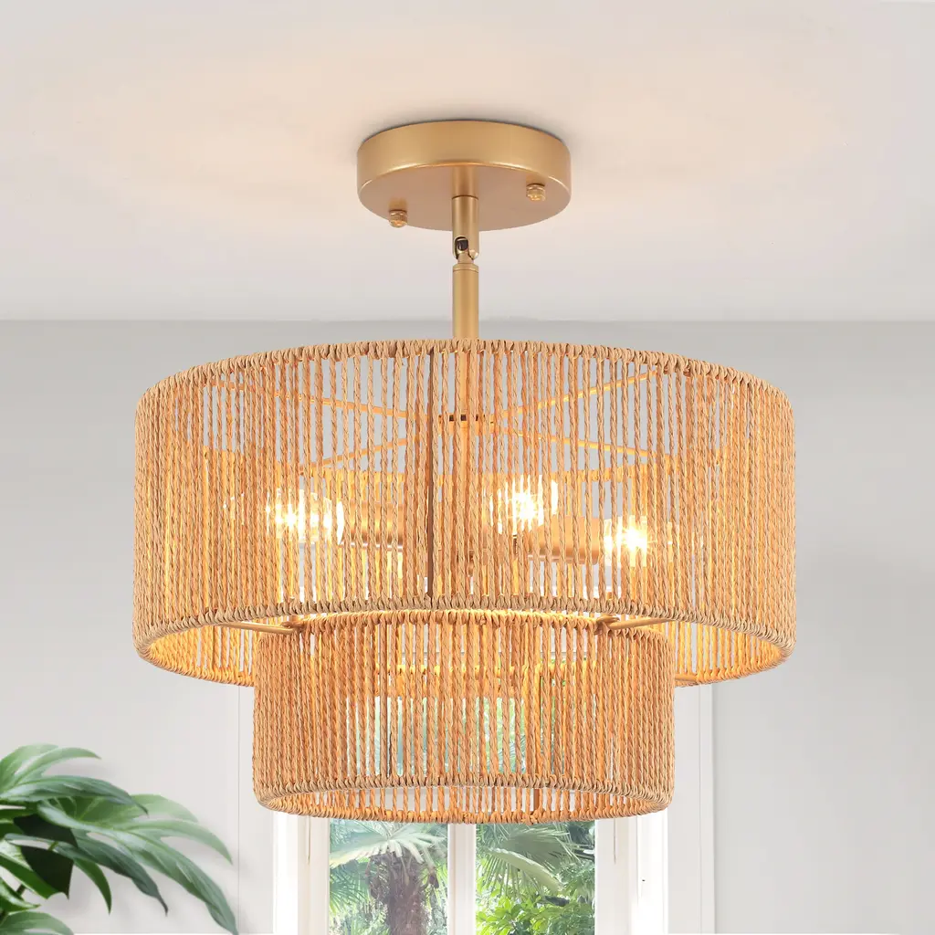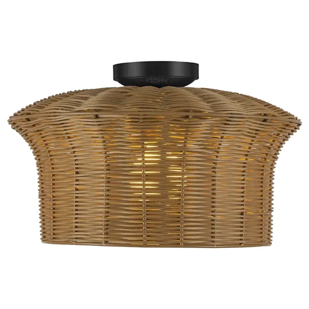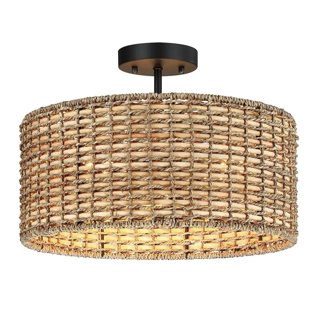 Lennie 3-Light Rattan Drum Semi-Flush Mount Ceiling Light - 16'' W - 16'' W