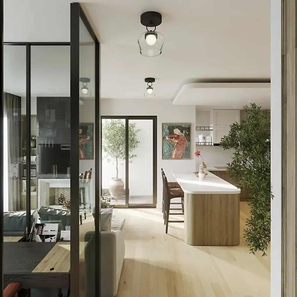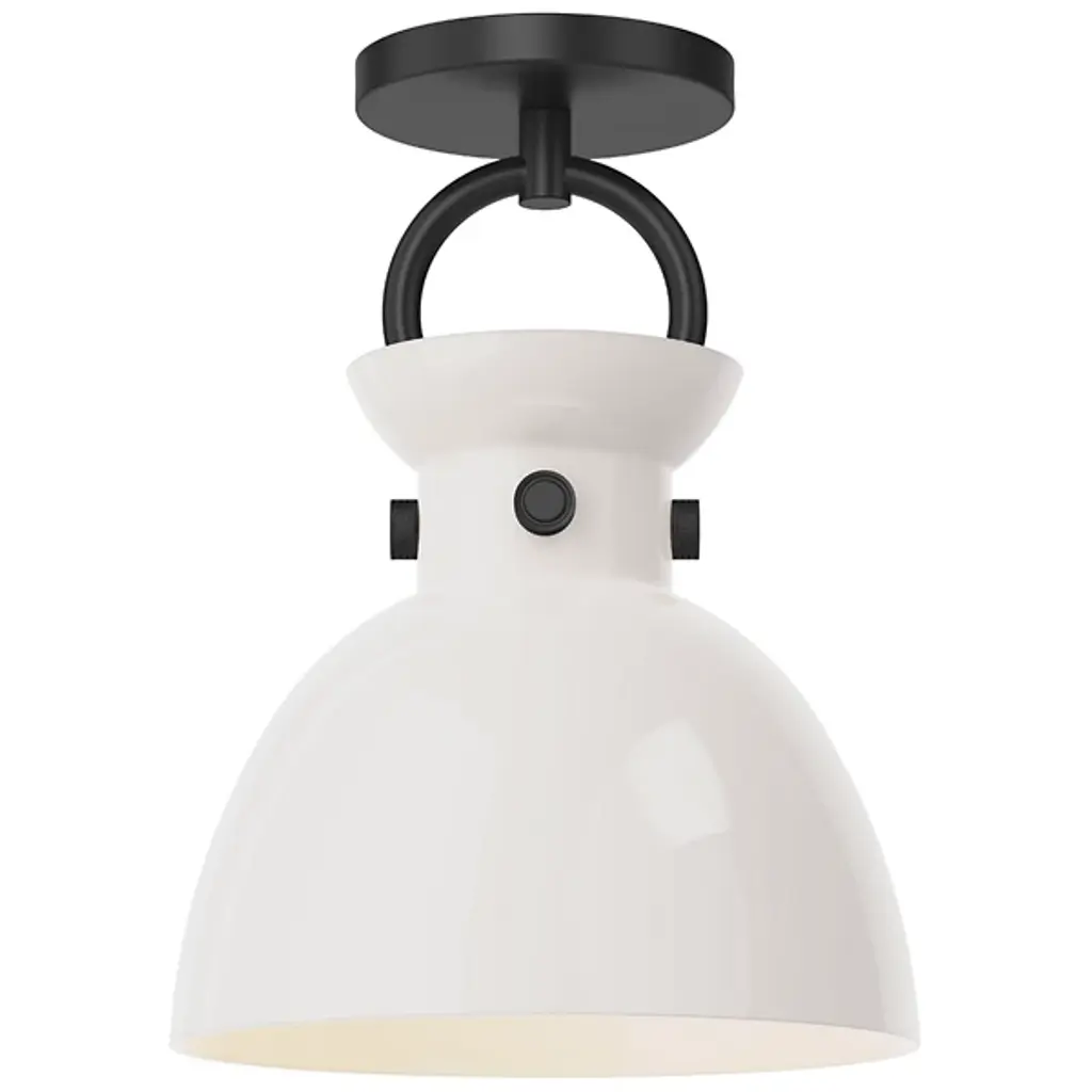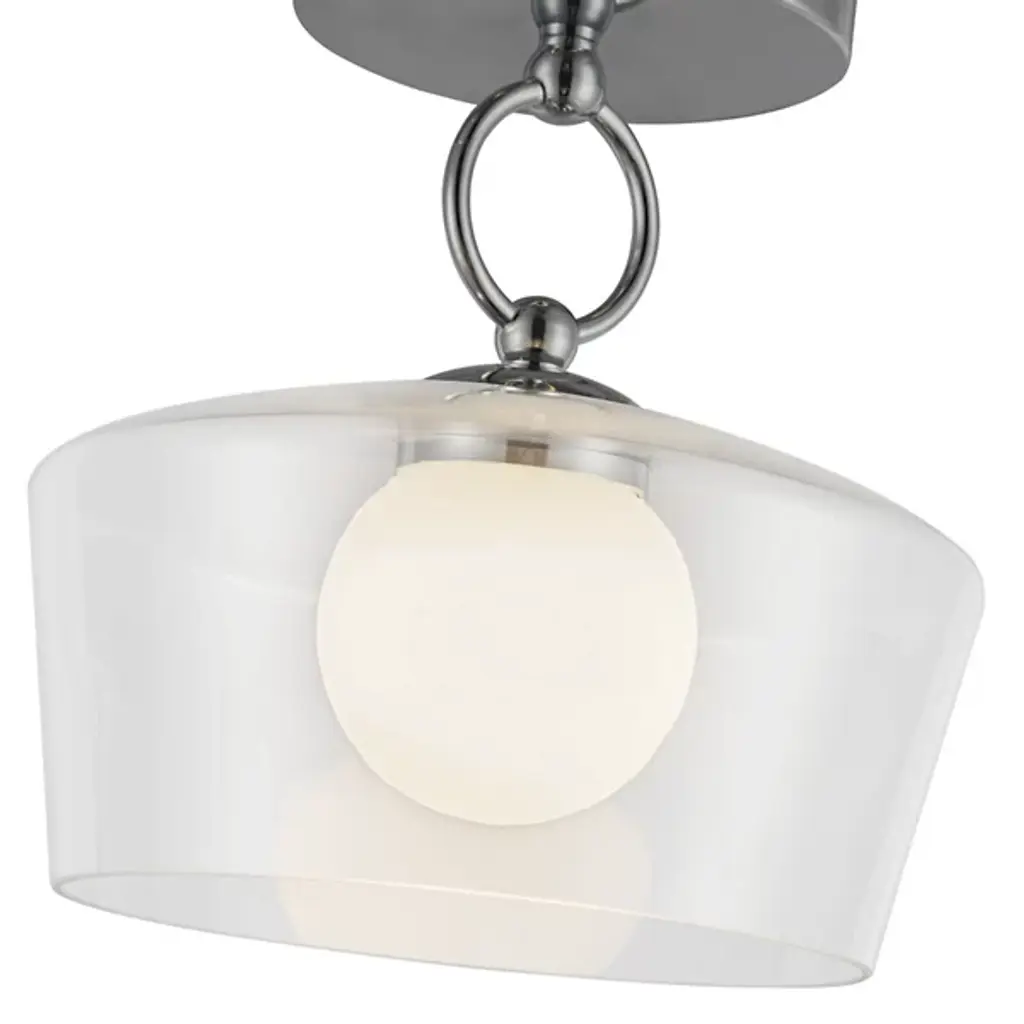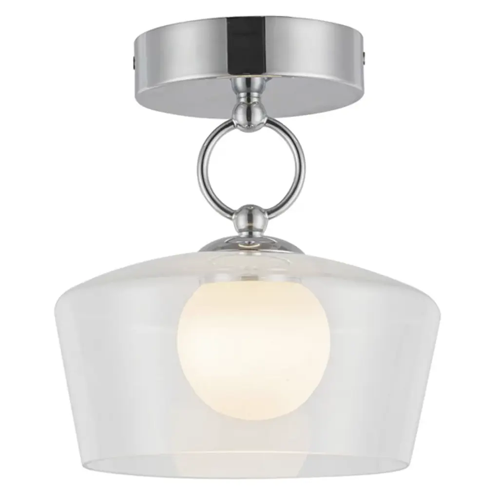 The Leota LED Semi-Flushmount from Alora Mood, designed by Kuzco NYC Studio, brings the elegance of fine jewelry into your home. It features a distinctive bangle-inspired loop that cradles a clear glass shade and adds sculptural beauty to any space. Inside, an opal glass diffuser softens and enriches the light, creating a warm and inviting glow. Its artistic design and refined details make it a functional fixture and striking decorative element for contemporary interiors.