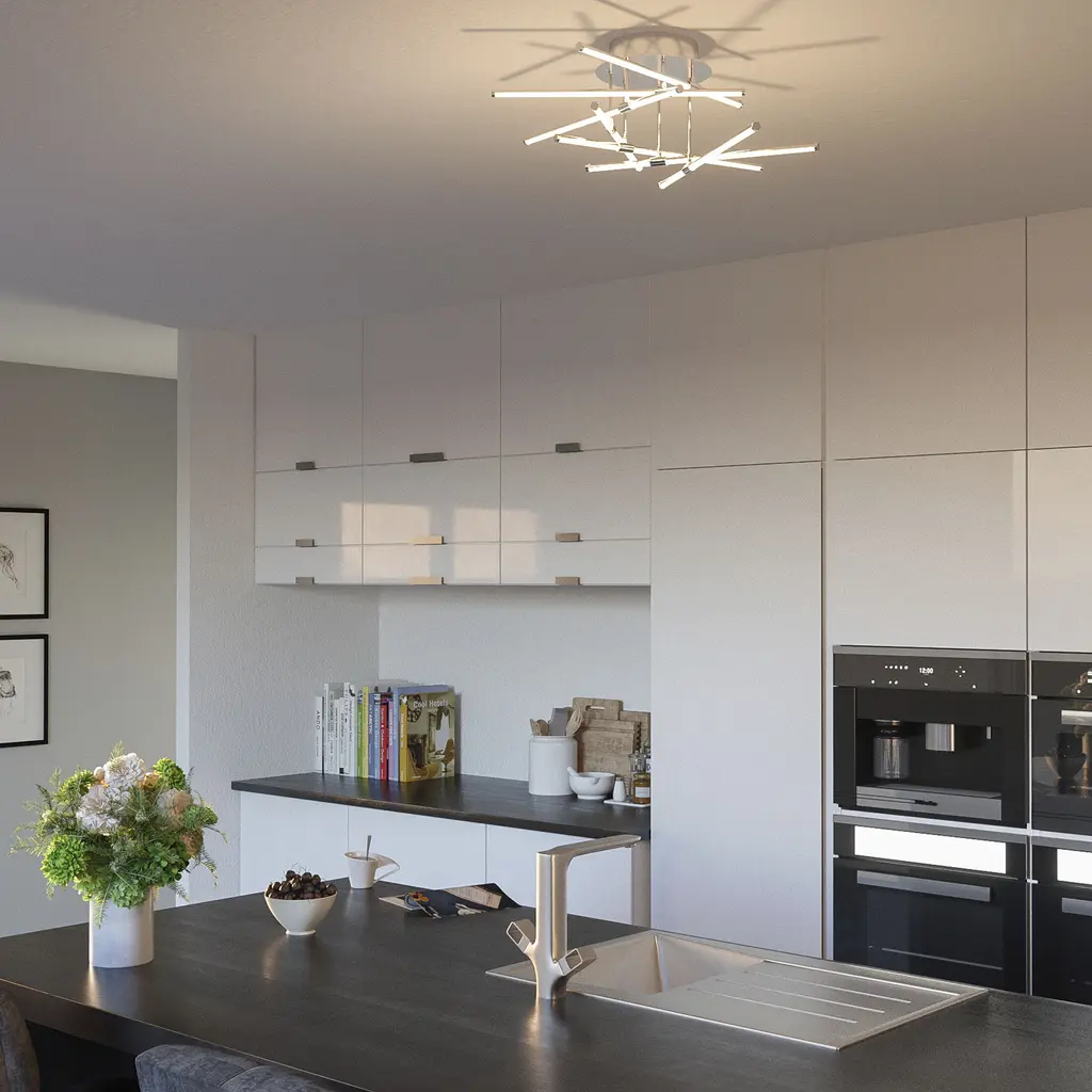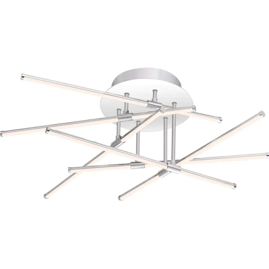 A starburst of light shines bright with the Lightshow Series for Platinum by Quoizel. Each individual LED light source rotates either left or right to allow micro changes to their positions. The sleek polished chrome and acrylic covers are combined perfectly to create a unified design.