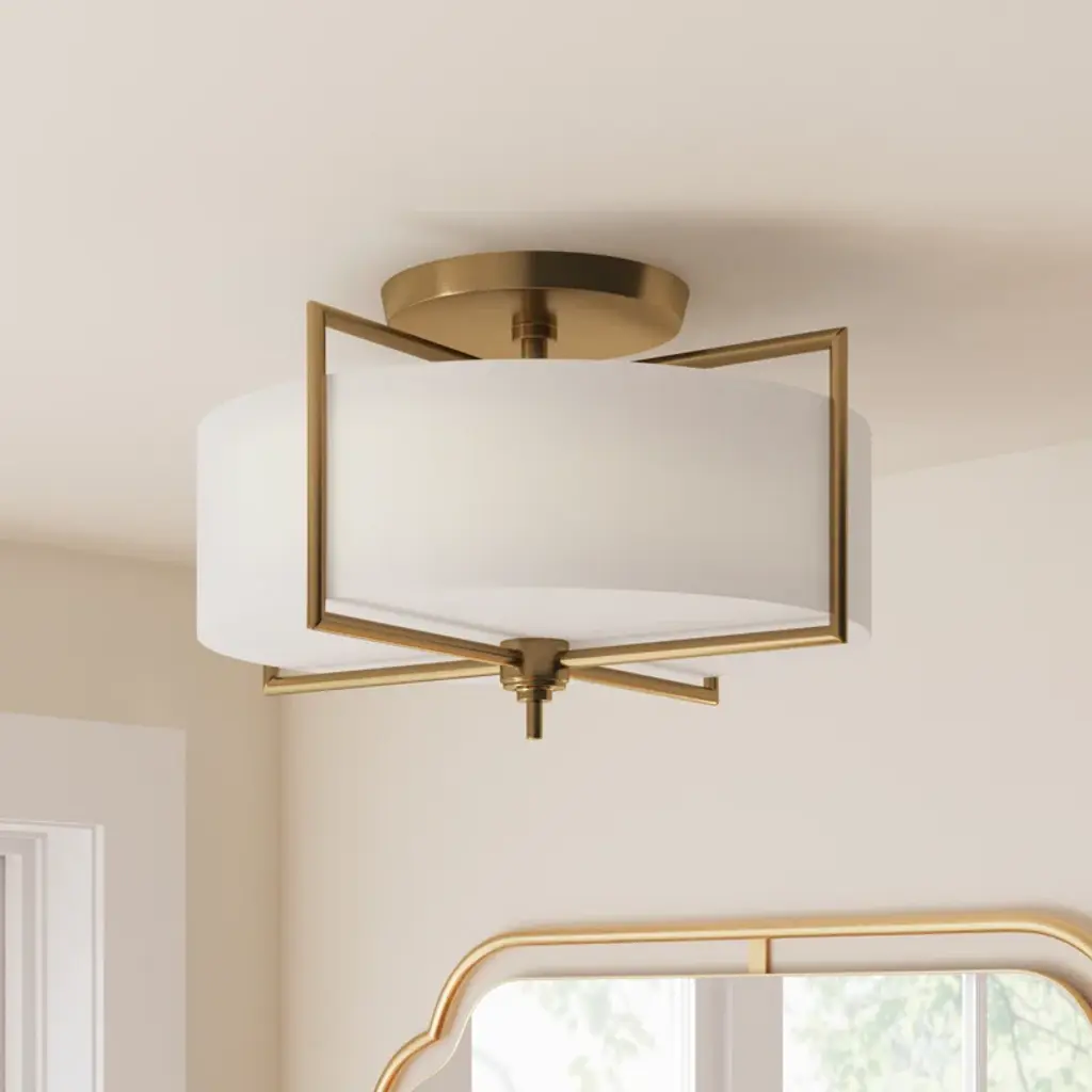 The minimal cruciform structure of the metal frame is the main feature of the design. The frame outlines and supports the inner cylindrical shade. All of the assembly hardware for installing the inner shade was engineered to be hidden in order to maintain the clean and simple aesthetic of the light.