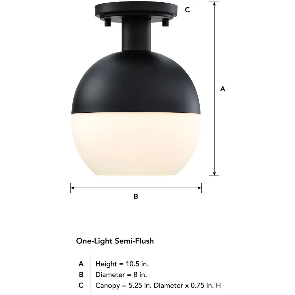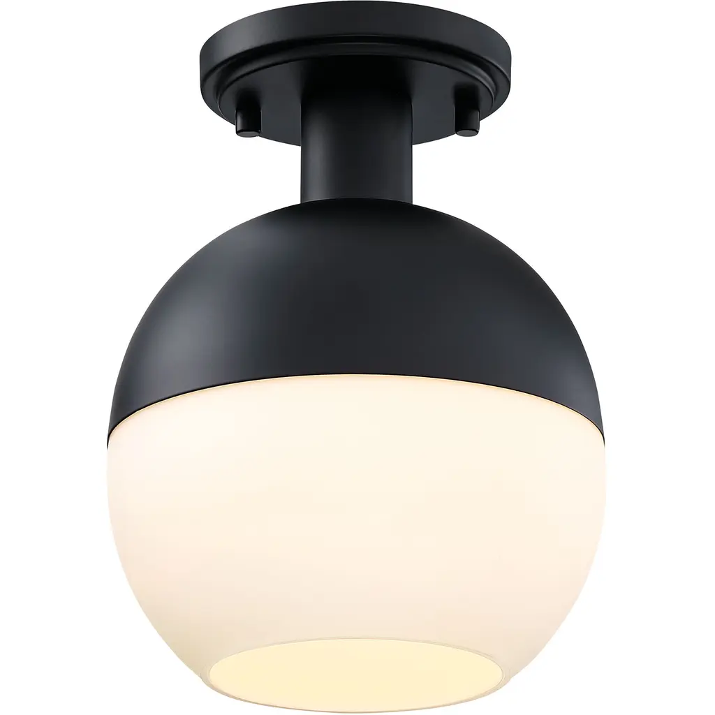Linden 1 Light 8 Inch Matte Black Semi Flush Mount Ceiling Light