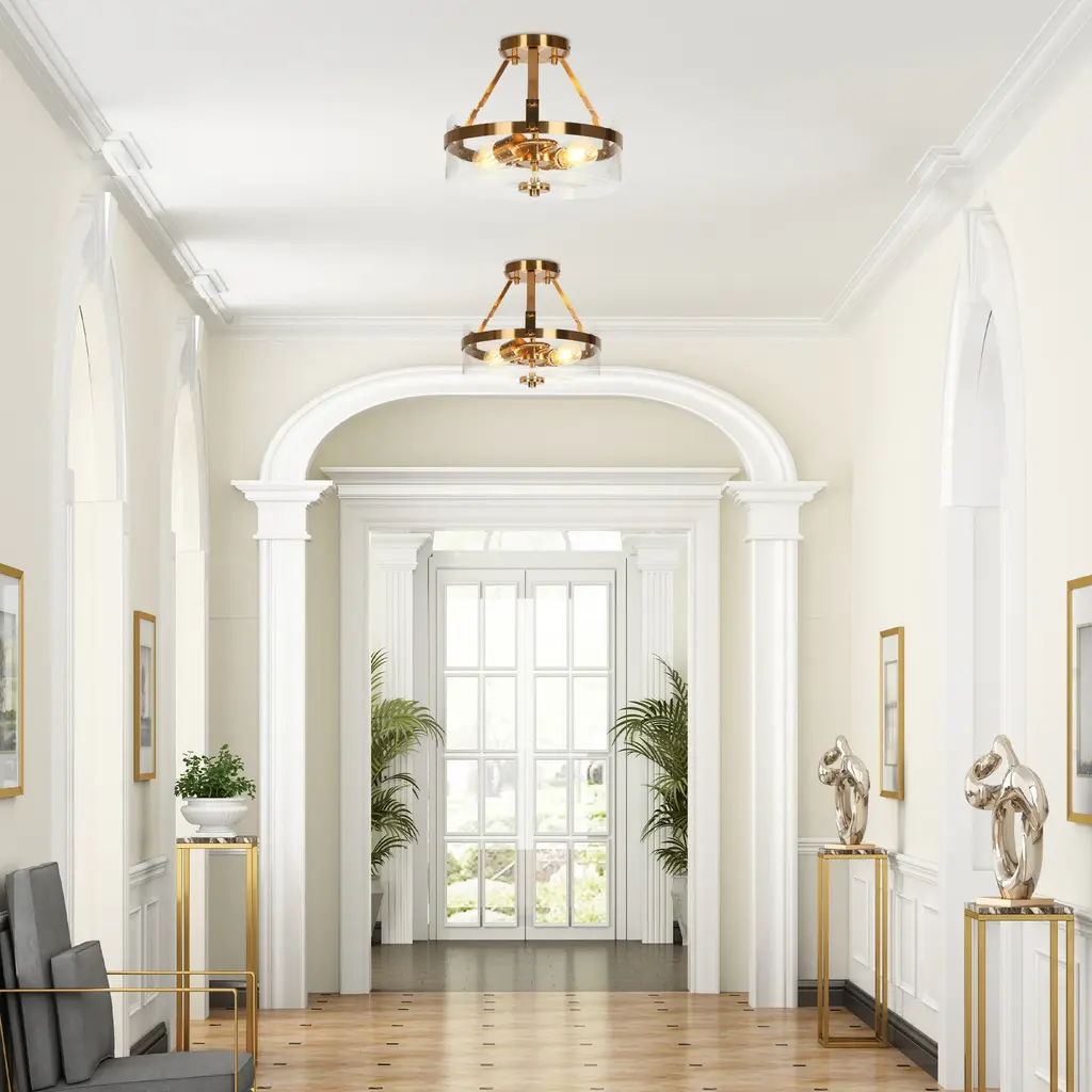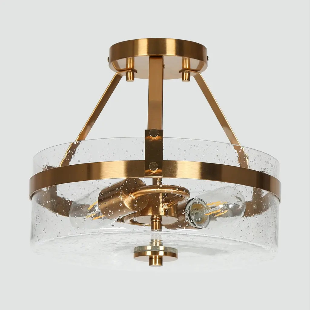 Liniya Modern 2-Light Electroplated Brass Drum Semi-Flush Mount Bowl Glass Ceiling Light - N/a - Electroplated Brass Gold