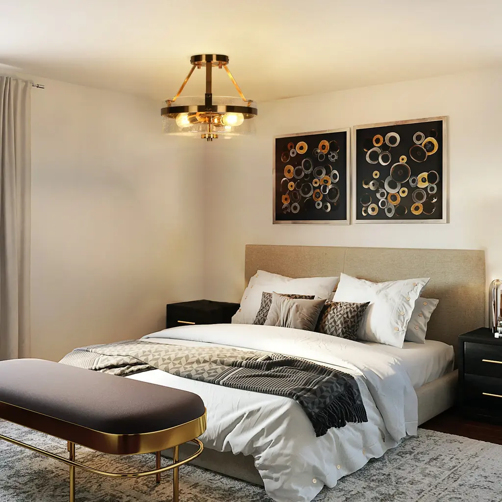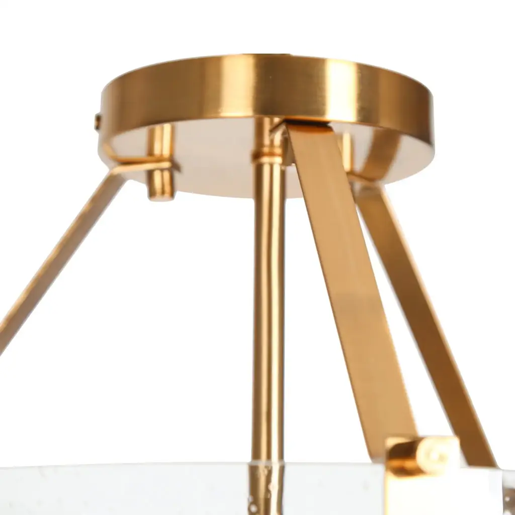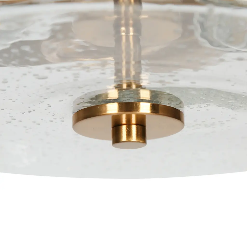 Features a simplistic design that a bowl glass shade with a gold belt decorated, this electroplated brass gold finish semi-flush ceiling light fixture is the perfect addition to any room like a bedroom, dining room, kitchen, or hallway.Click to see Liniya Collection Lighting | OverstockFeatures:Material: Metal, seeded glassMetal Finish: Electroplate brassLight Fixture: D 12" x H 10"Canopy: D4.7'' x H1''Weight: 4.9 lbsStyle: Modern/ Farmhouse/ Industrial/ TransitionalWarranty: 1 yearBulb: 2* Type A, Max 60W, E12 (Not included)Bulb Type: Edison/ / LED (Recommend CA10,B10,B11)Compatible with dimmable bulbs/ switches