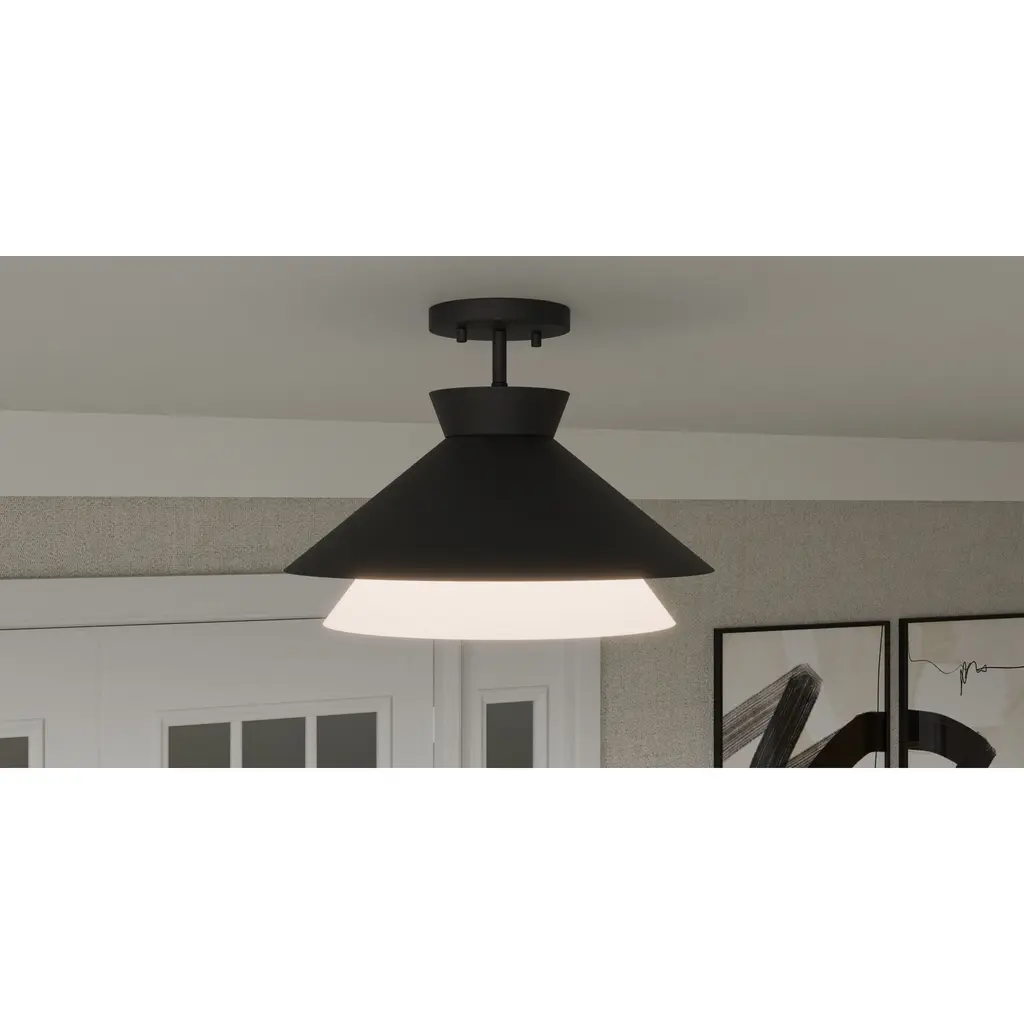 Lionel 1 Light 15 Inch Matte Black Semi-Flush Mount Ceiling Light, Medium