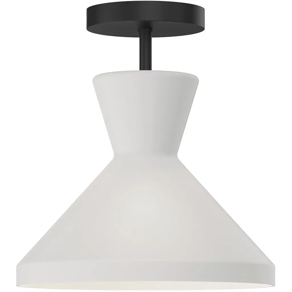Lionel makes a bold design statement, available as a semi-flush mount or large pendant light. The metal outer shade is finished in a matte black, contrasted beautifully by the inner white alabaster glass shade. With its geometric silhouette and sleek design, Lionel is a perfect addition to any modern kitchen, bar area, or other living space.