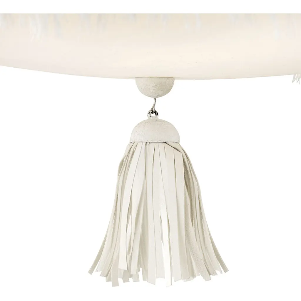 The Lisa McDennon Collection offers a striking mix of edgy, sculptural silhouettes that incorporate modern, organic elements and luxe materials, brought to life by her innovative and original point of view. Taking a nod from current distressed fashions, Bayas soft, hand-sewn patchwork shade creates a light and elegant feeling. Its coastal cottage style and chic texture make an artsy transitional statement complemented by a leather tassel, comfortable dimmable lamping, and a Textured Plaster finish.