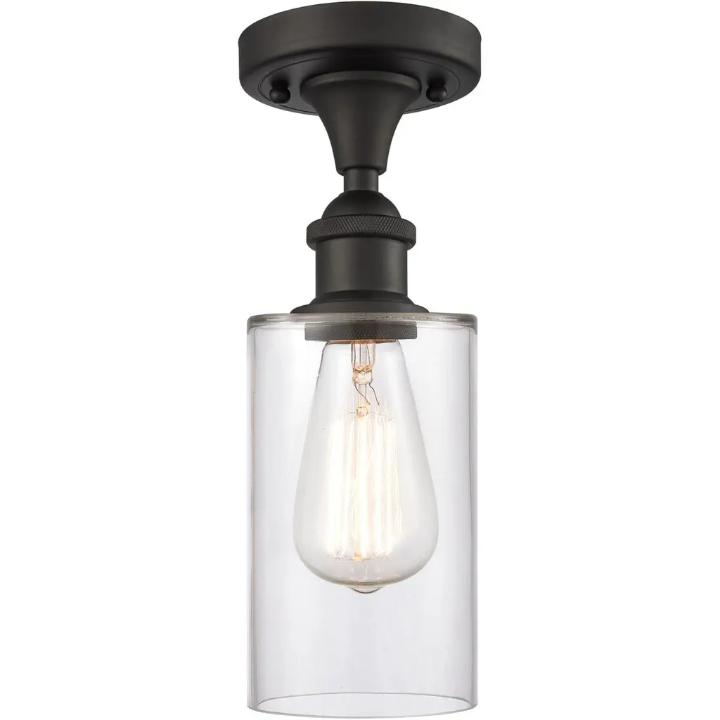 Collection: Avondale, Material: Steel, Finish Color: Black, Width: 9", Height: 9.25", Lamping Type: Incandescent, Number Of Bulbs: 1, Wattage: 60 Watts, Moisture Rating: Dry Rated, Desc: The Avondale single light semi flush puts a new spin on schoolhouse style. The curvy clear glass shade is paired with antique brass finish details, creating a look that is great for any space.,