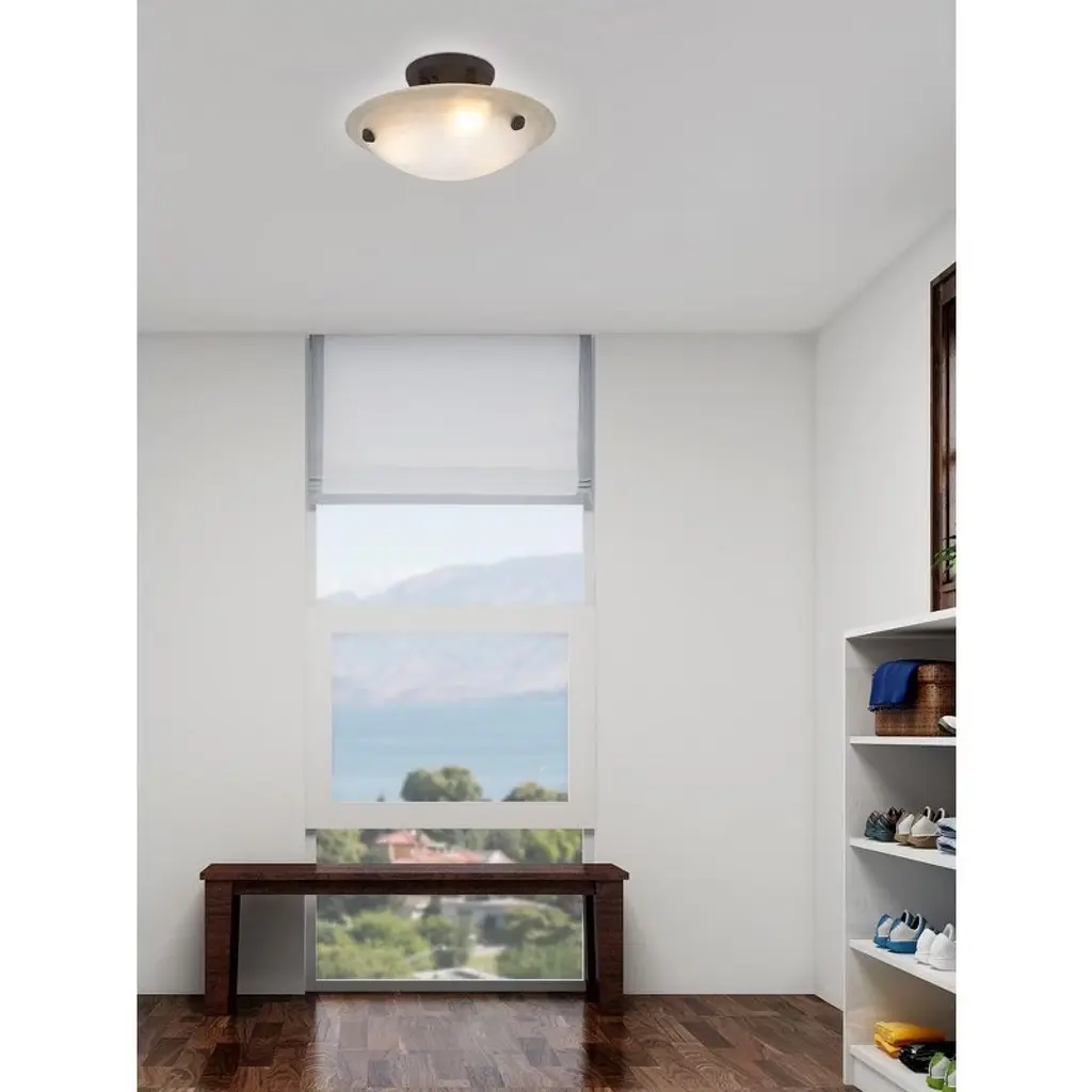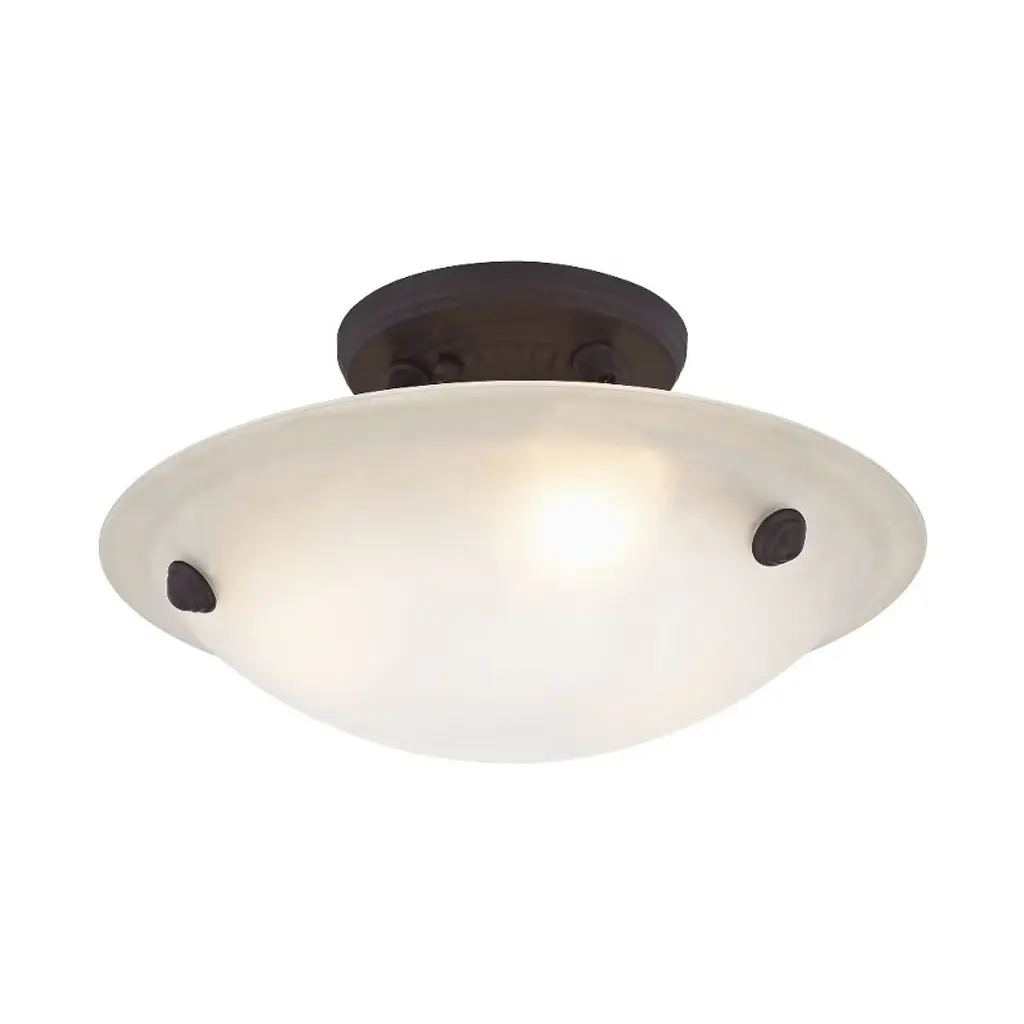 Collection: Oasis, Material: Steel, Finish Color: Bronze, Width: 12", Height: 7", Lamping Type: Incandescent, Number Of Bulbs: 3, Wattage: 60 Watts, Moisture Rating: Dry Rated, Desc: This semi flush features contour lines and a bowed profile. With an understated design, this piece is perfect for any space in your home. Featuring a honey alabaster glass and bronze finish, this fixture will effortlessly blend with your existing decor. Canopy Included: Yes / Shade Included: Yes / Canopy Diameter: 5.00. ,