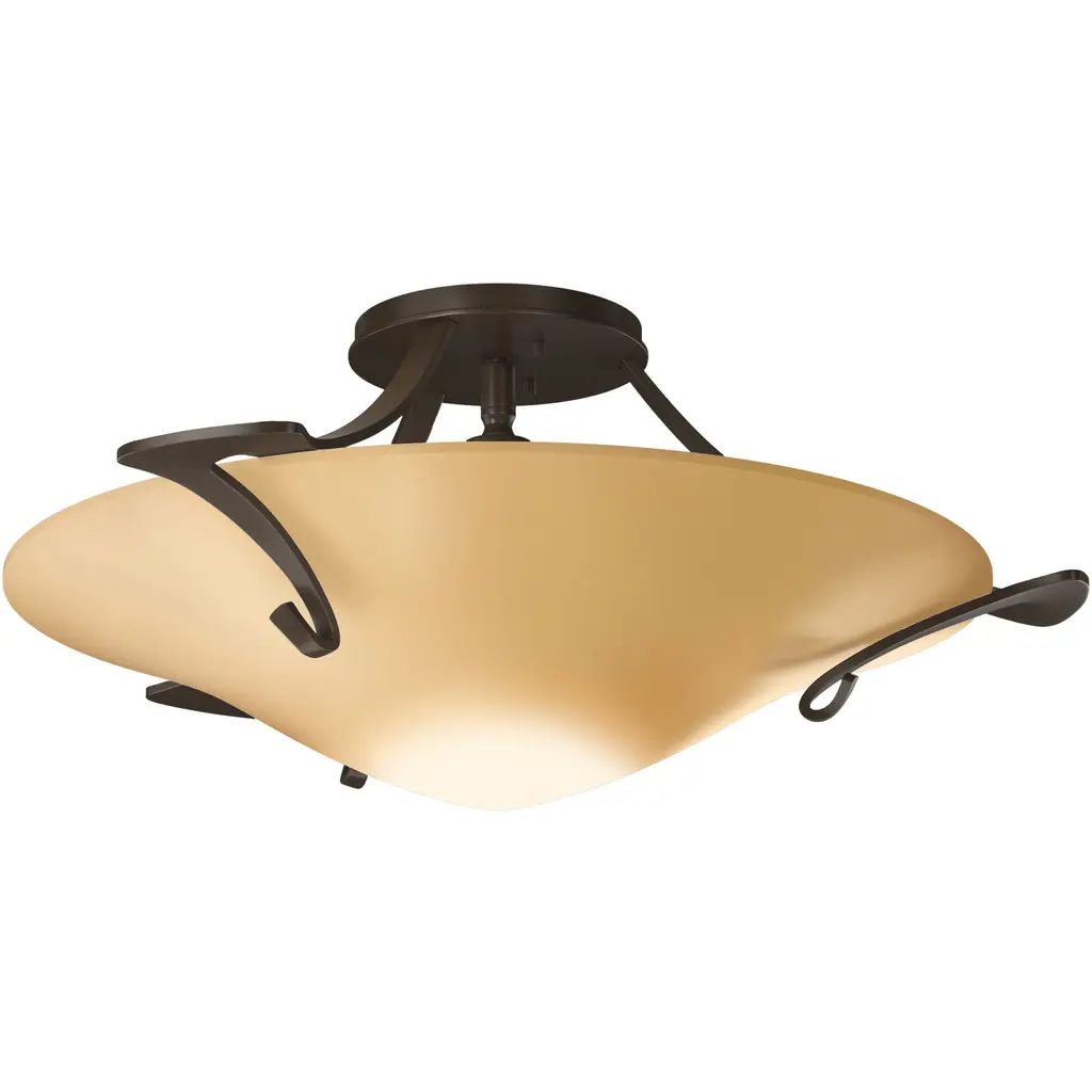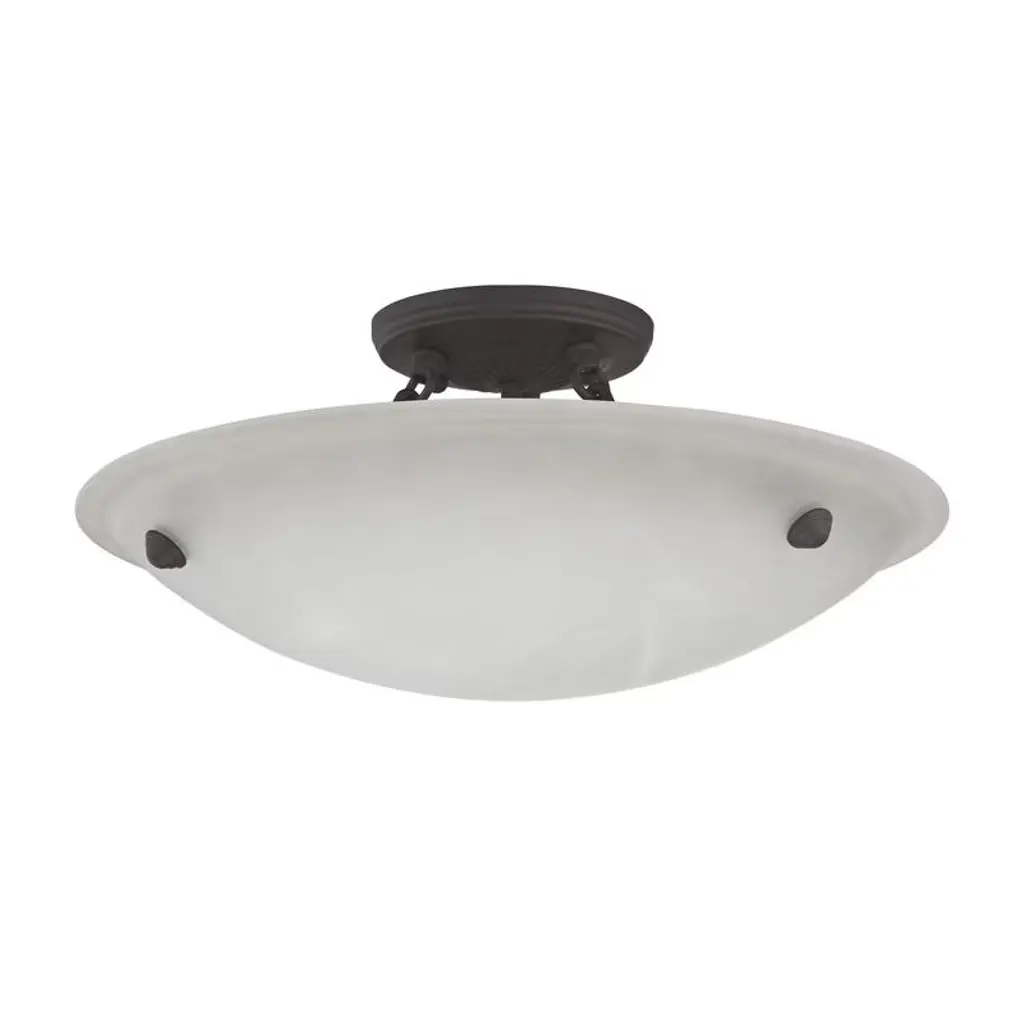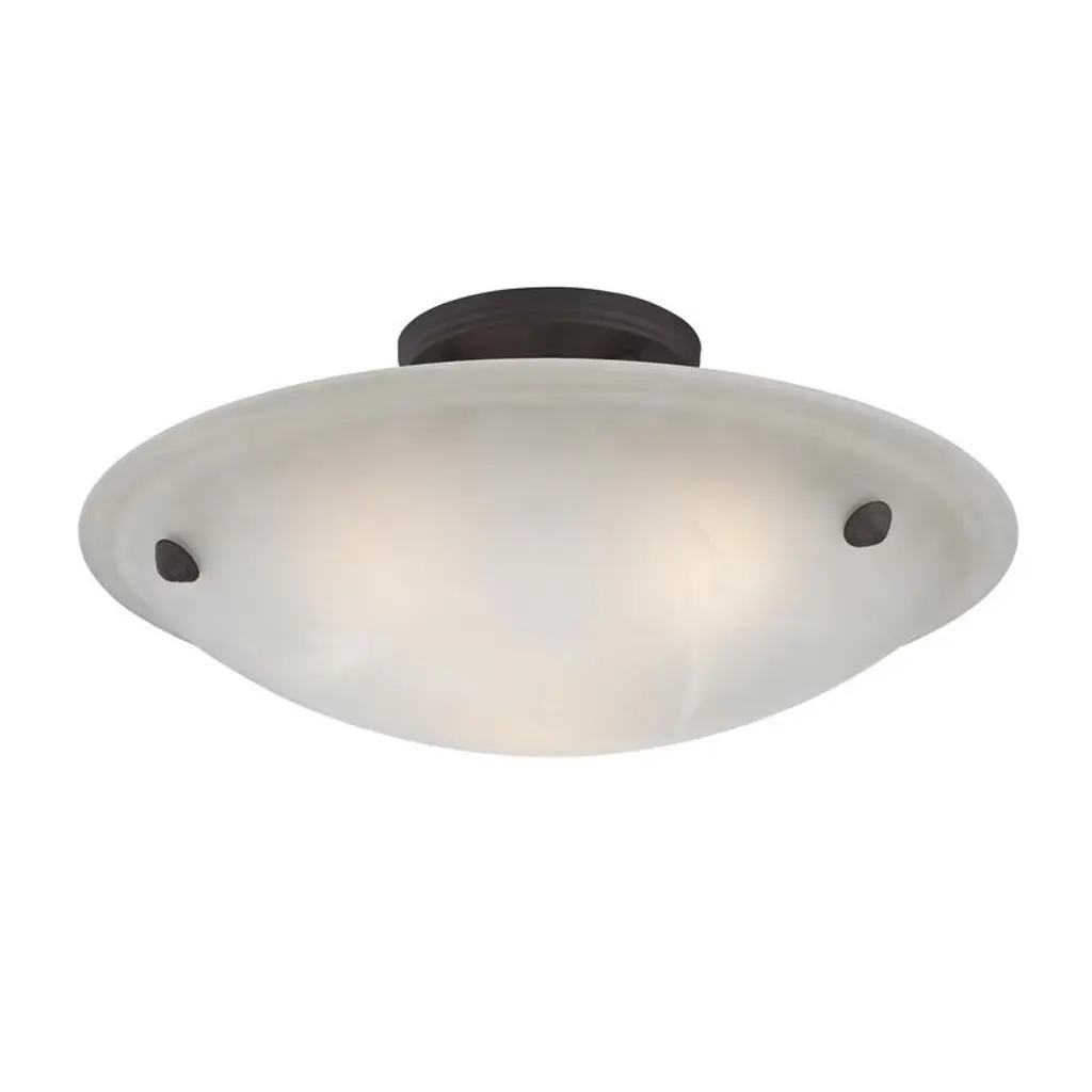 Collection: Oasis, Material: Steel, Finish Color: Bronze, Width: 16", Height: 7", Lamping Type: Incandescent, Number Of Bulbs: 3, Wattage: 75 Watts, Moisture Rating: Dry Rated, Desc: This semi flush features contour lines and a bowed profile. With an understated design, this piece is perfect for any space in your home. Featuring a honey alabaster glass and bronze finish, this fixture will effortlessly blend with your existing decor. Canopy Included: Yes / Shade Included: Yes / Canopy Diameter: 5.00. ,