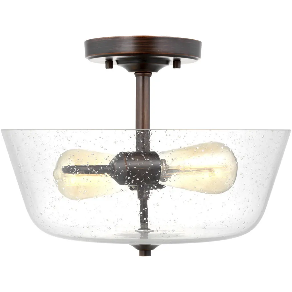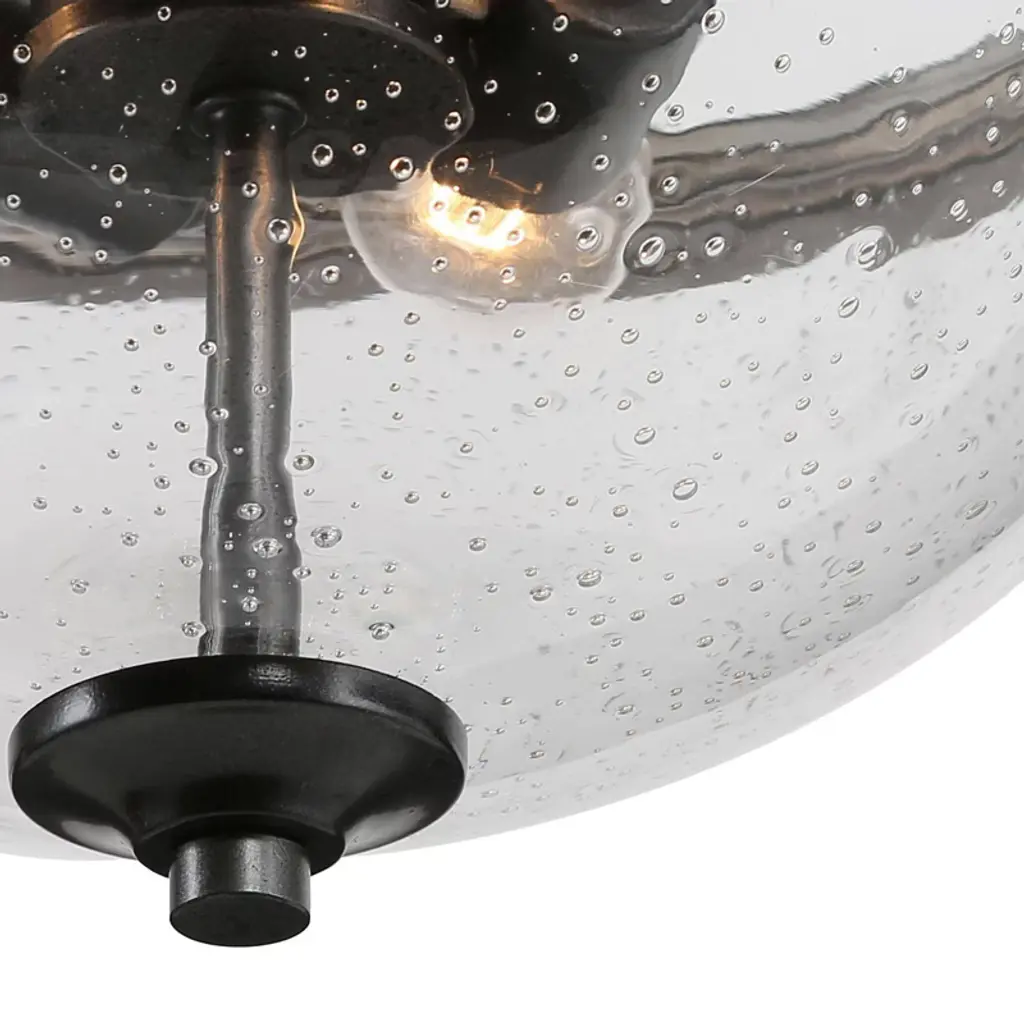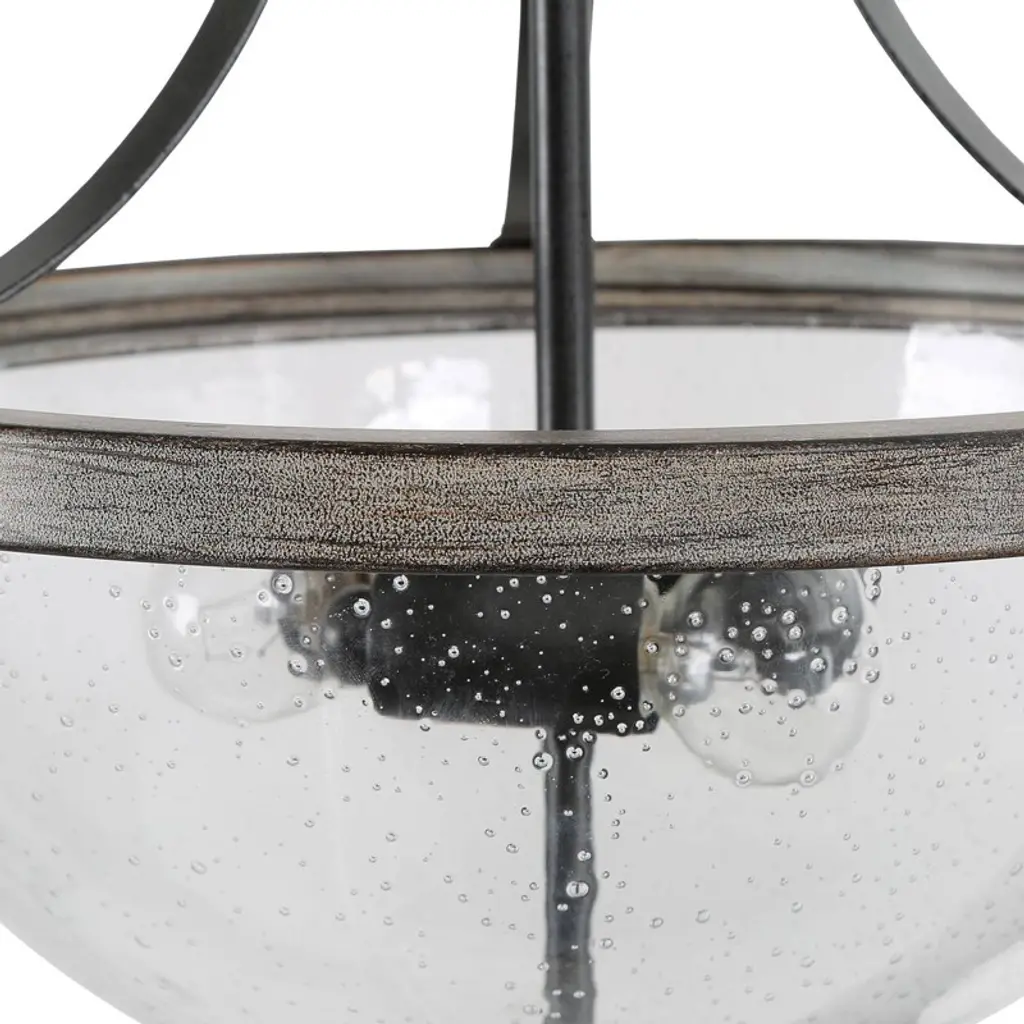Lnc Maven 3-lights 13-in Matte Black And Distressed Gray Seeded Glass Bowl Led Semi-flush Mount Lights