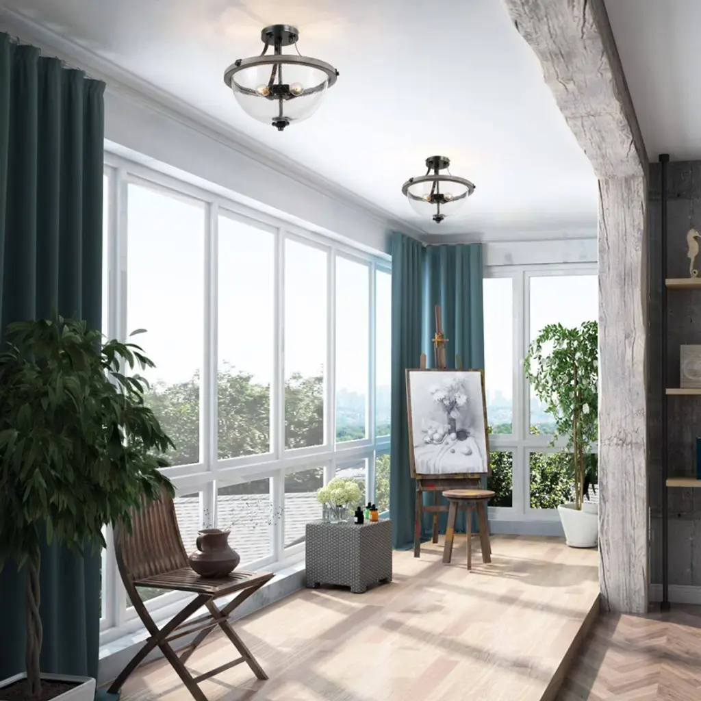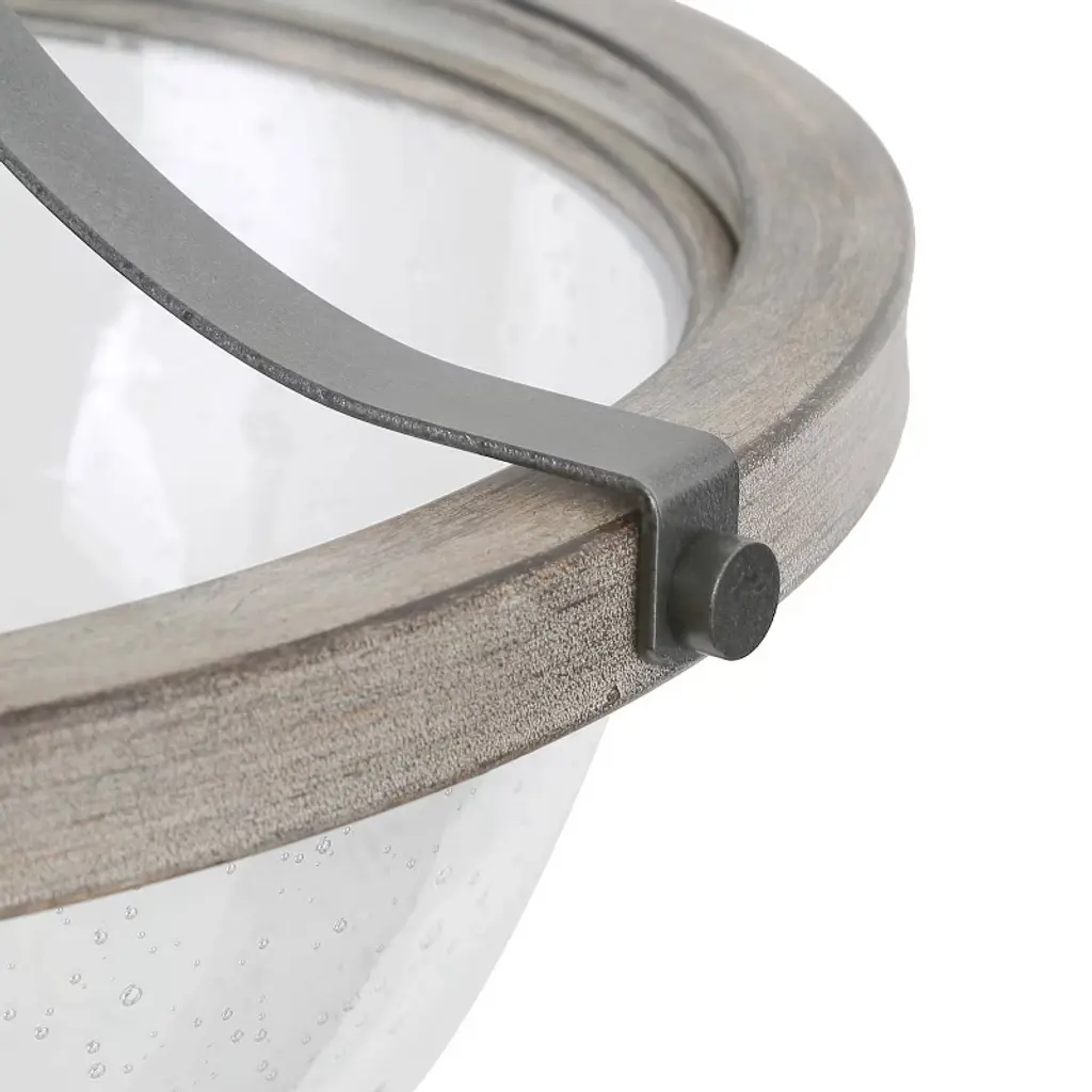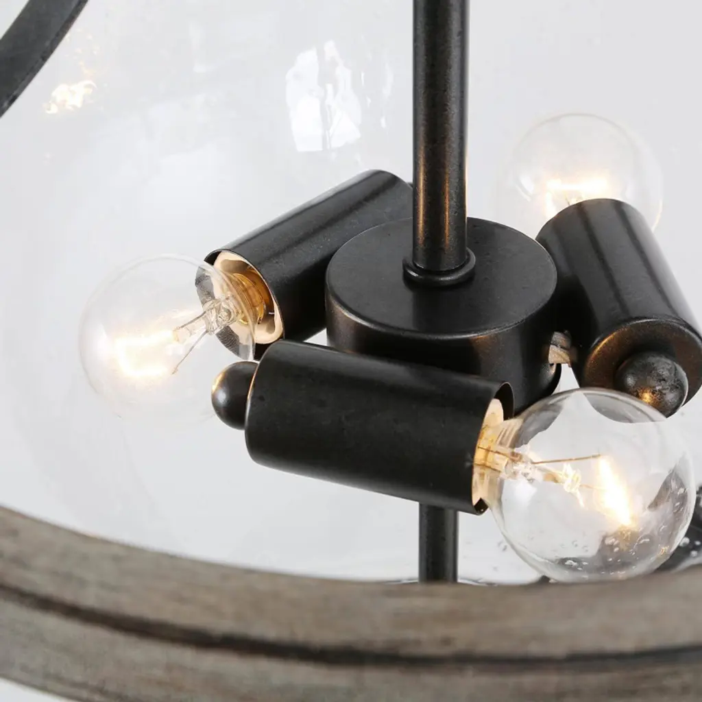 This farmhouse industrial round ceiling light features a metal frame with clear seeded glass shade, defusing soft and adequate light. Gray and wood tone metal finish offer a modern farmhouse look, add a style and interest to your home. It is a perfect choice for your master bedroom, living room, entryways, foyers, storage rooms, kitchen, and dining rooms.