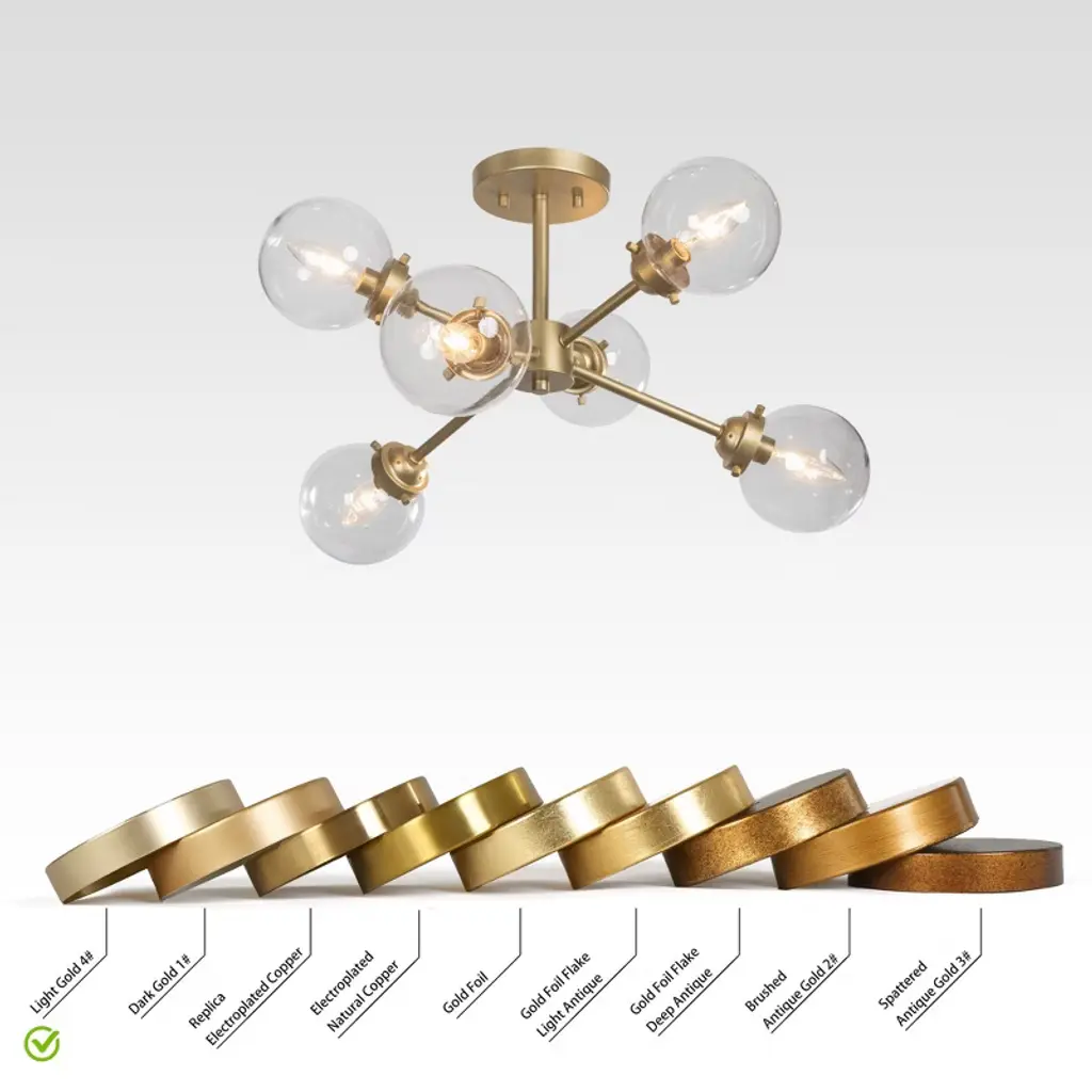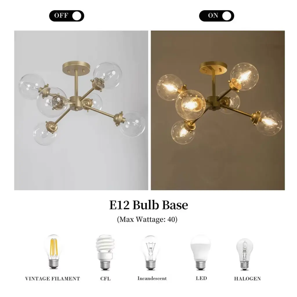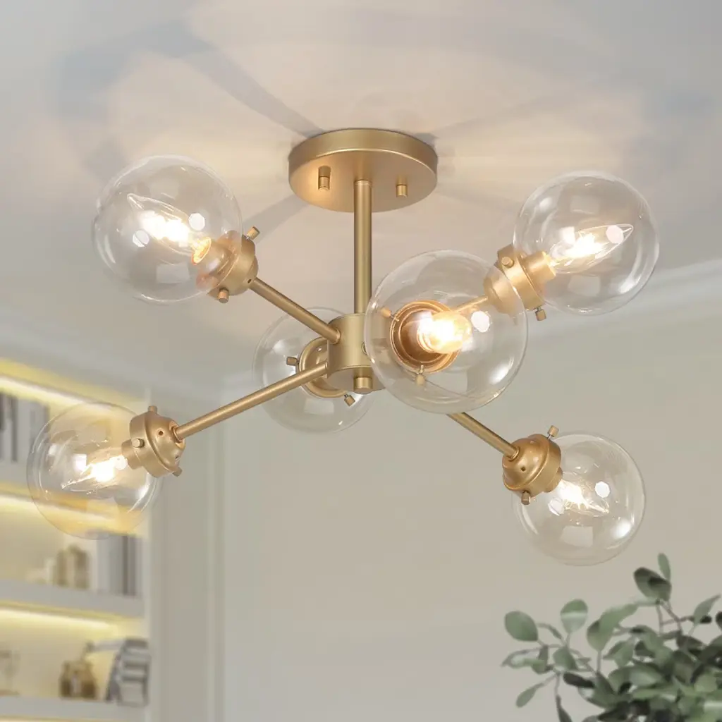 Lnc Pursuit 6-lights 25-in Matte Gold And Clear Globe Glass Led Semi-flush Mount Lights