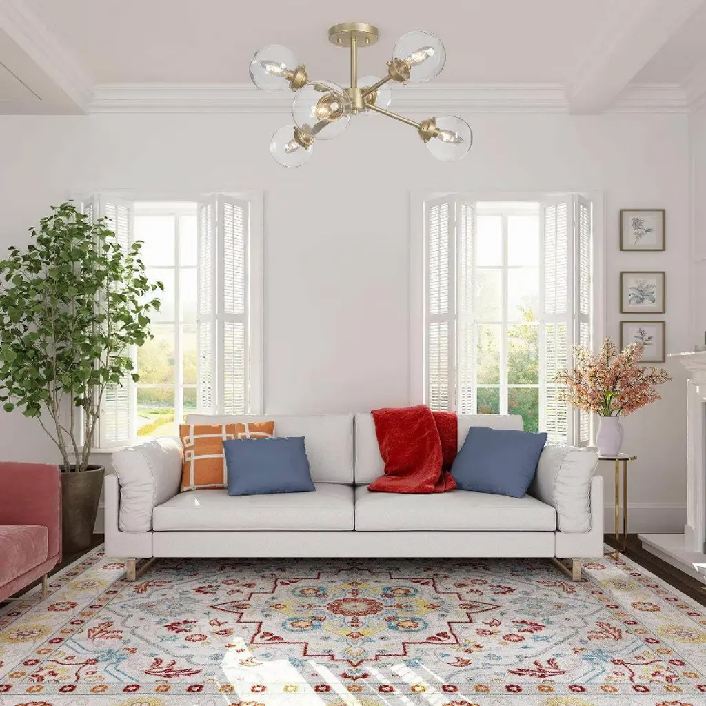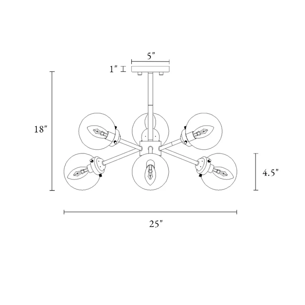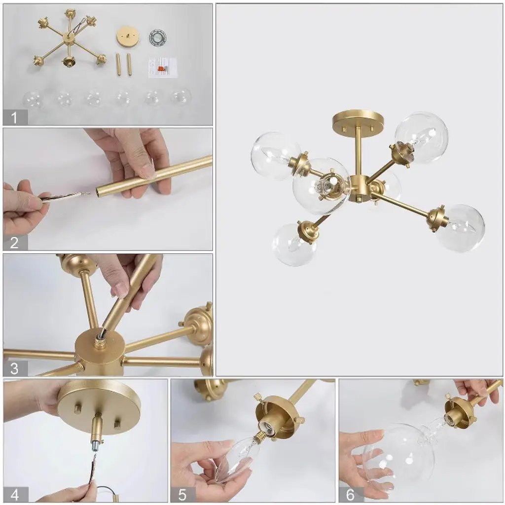 Lnc Pursuit 6-lights 25-in Matte Gold And Clear Globe Glass Led Semi-flush Mount Lights