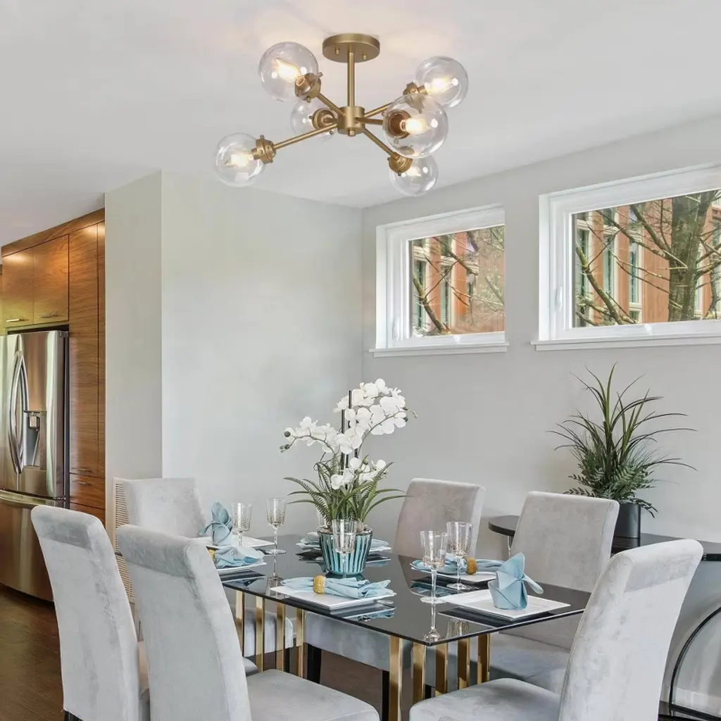 The Pursuit collection represents a pinnacle in home decor refinement, offering a comprehensive selection of meticulously crafted, modern lighting fixtures. Each piece is meticulously designed with matte light gold finishes and features six clear bubble glass shades that enhance lighting ambiance to its fullest potential. The collection seamlessly integrates simplicity and contemporary style, showcasing luxurious gold finishes and glass lampshades engineered for outstanding light transmission. Whether adorning a living space, dining area, or bedroom, every fixture in the Pursuit collection ensures to illuminate your room with a harmonious fusion of elegance and practicality, setting a new standard in interior lighting solutions.