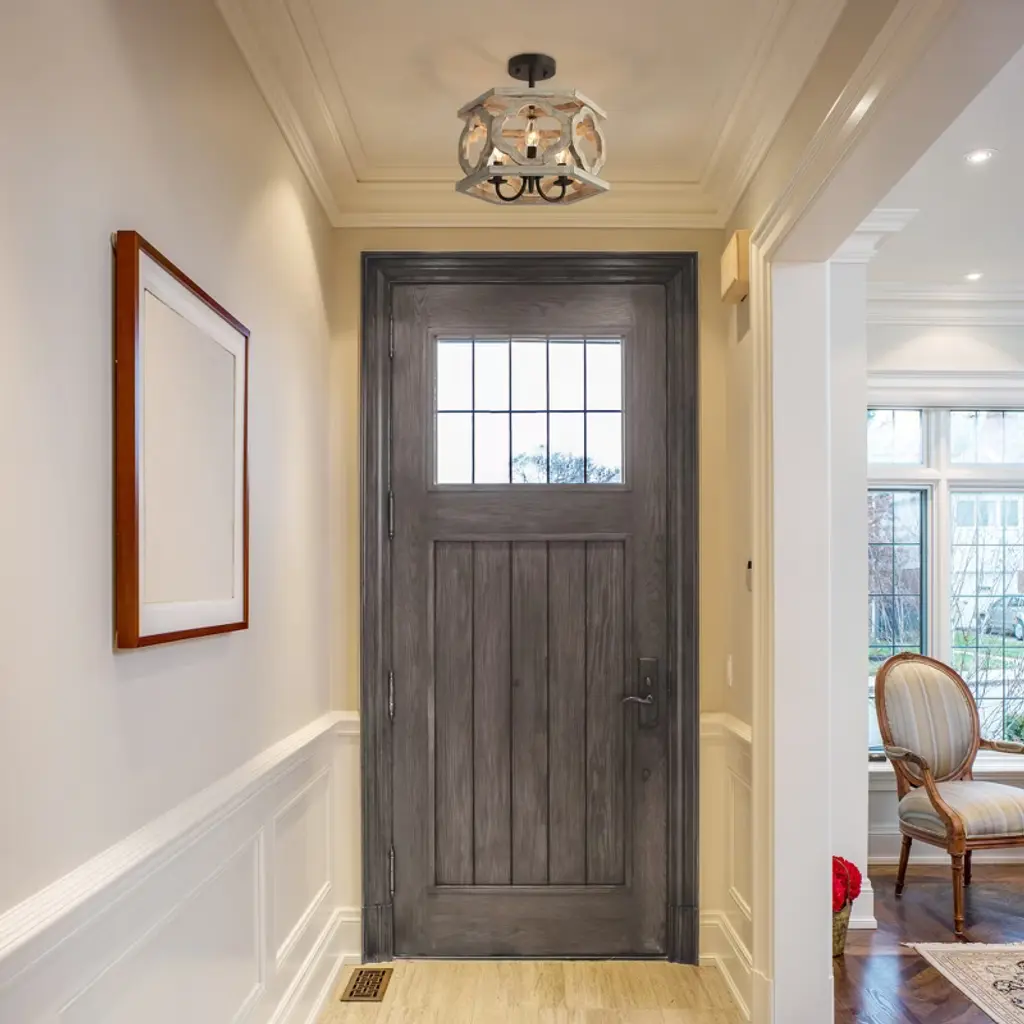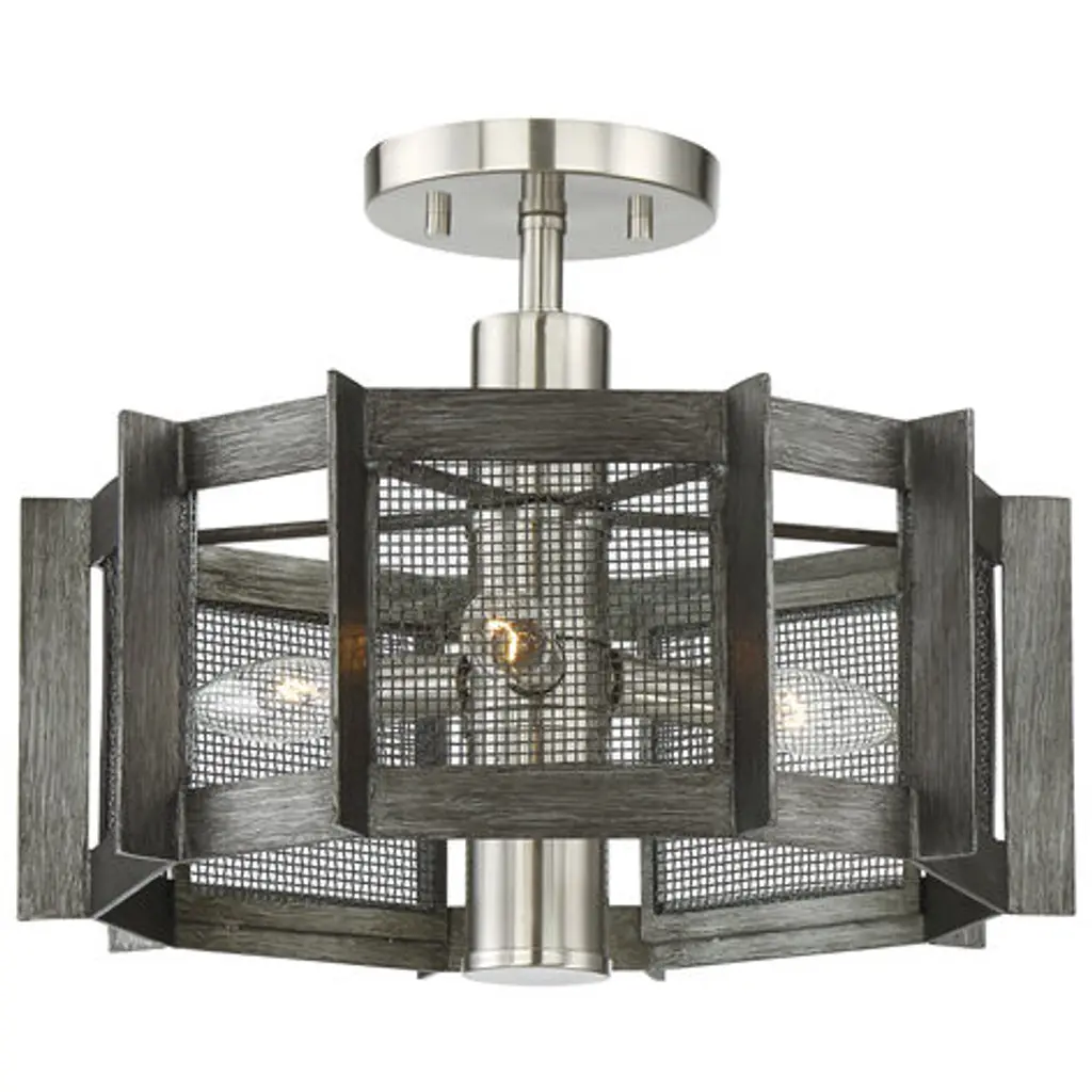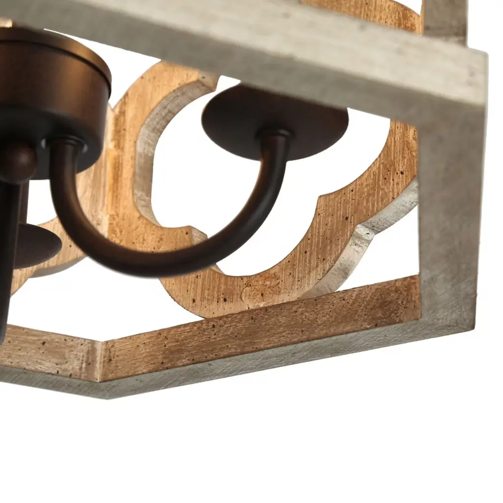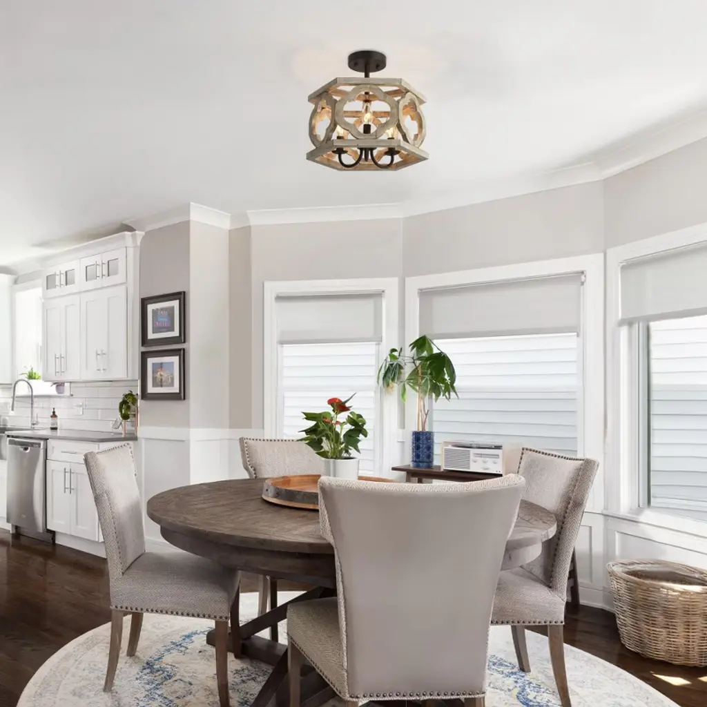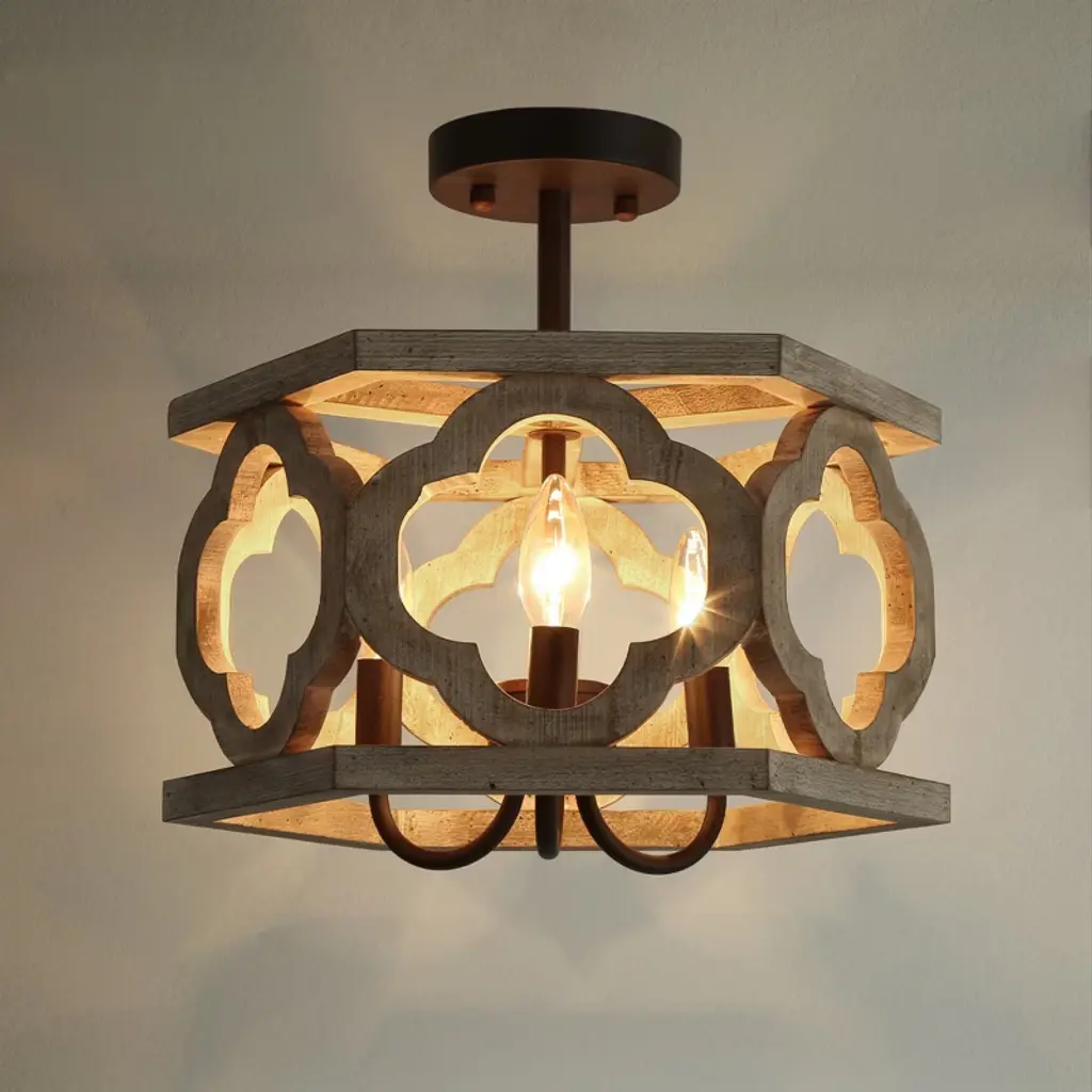 Lighting is an important part of the ensemble home decor. Not only can a ceiling light elevate the look of the room, but as a core piece to narrate the owner's spirit and character. A rustic antique white wood finish outlines a bronze finish openwork circle frame design in this semi-flush mount ceiling light. The handsome fixture is an easy way to complement rustic style decorating or update more rustic decor.
