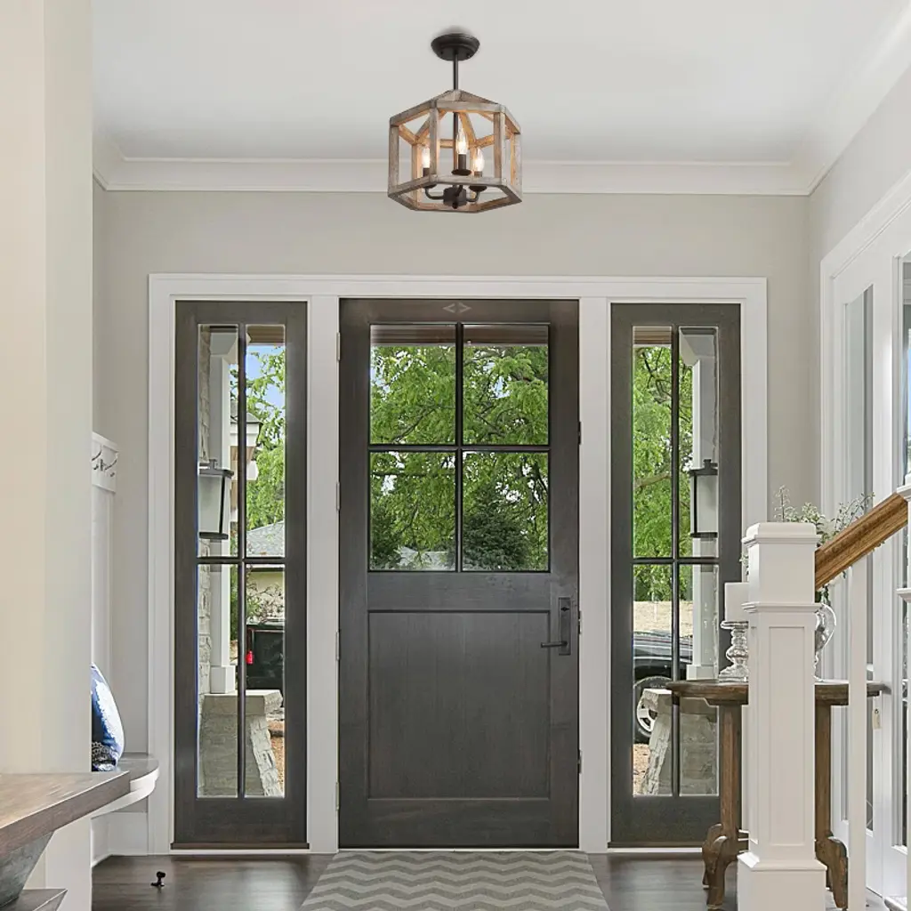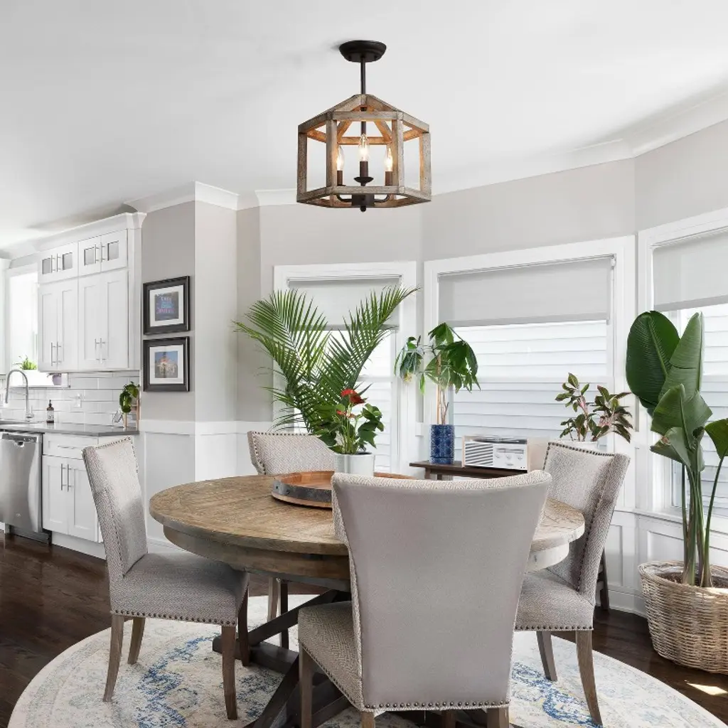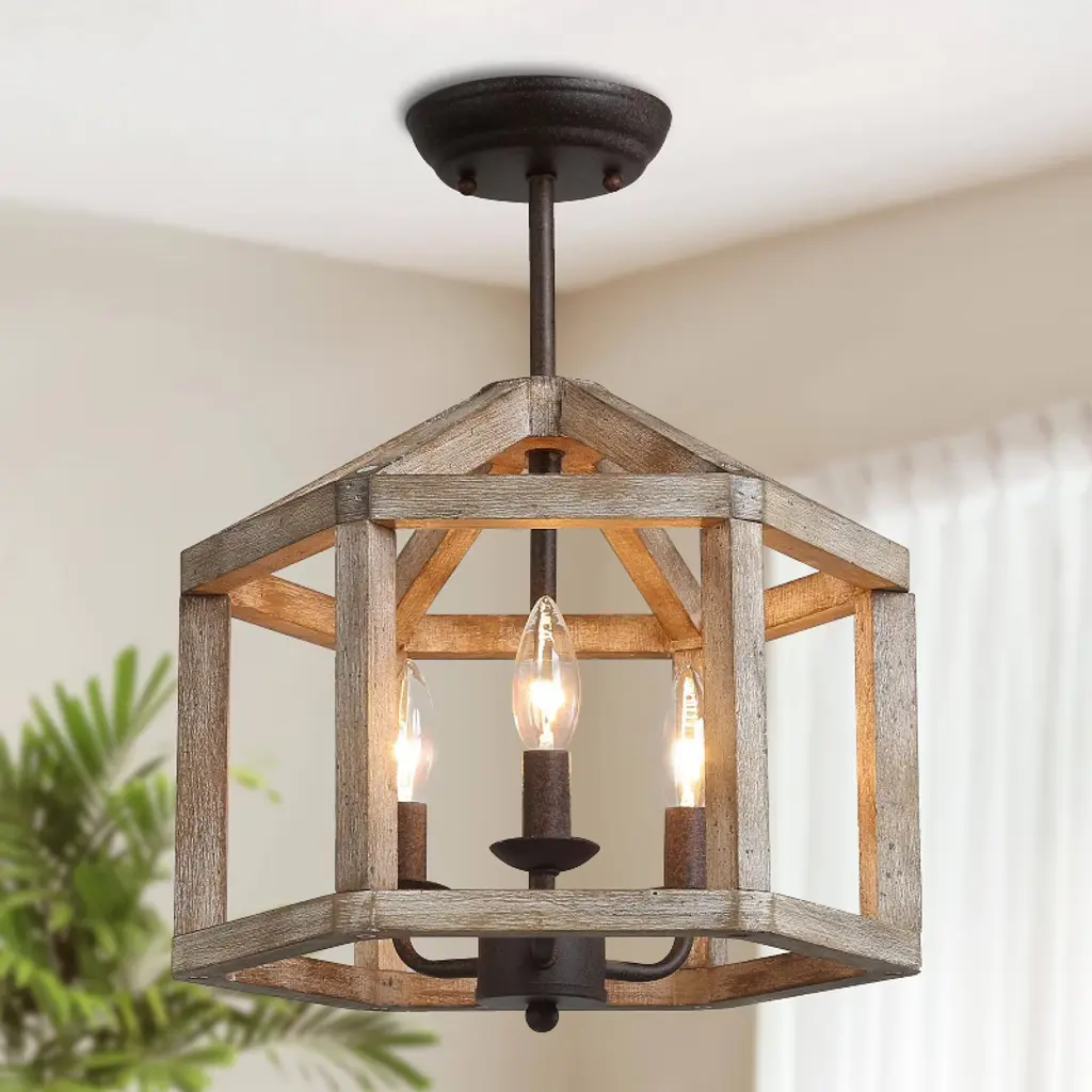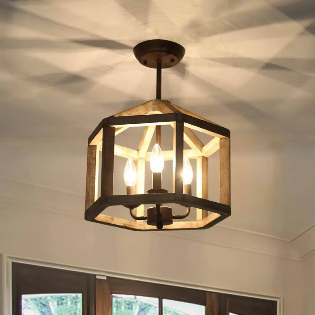 This hand-painted grayish white wood and antique bronze geometric ceiling light exudes laid-back modern style. Lightweight wood with a bronze wash finish reminiscent of driftwood will brighten your space and blend right in with your coastal, lodge or eclectic home. Character defining variation in the finish is to be expected with this natural wood piece. The cone-shaped framework generates unique visualization for aesthetic excellence with due vibe that involves mid-century minimalist style that will aggrandize the decor for your bedrooms, kitchen islands, dining room, and living rooms etc.
