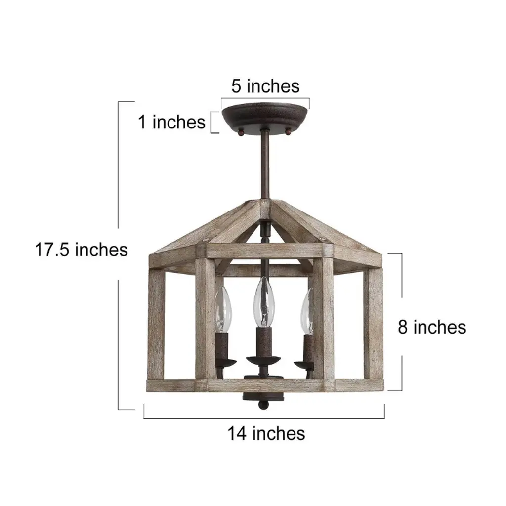 Lnc Quaint 3-lights 14-in Distressed Gryish White Wood And Rustic Bronze Square Led Semi-flush Mount Lights