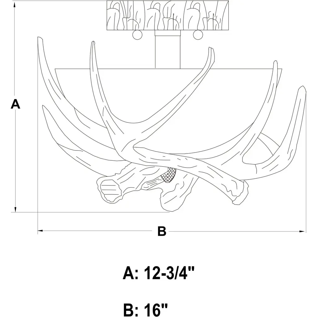 Bring a little nature indoors with the Lodge collection. Its wild look is warm and inviting yet interesting and stylish. The fixtures are designed to replicate the textural elements of pine tree bark and wood. The sculpted antlers are realistically detailed. French scavo glass shades complete the look. Everything combined makes this collection a great choice for a rustic vacation lodge, cabin or a suburban home. It will complement a variety of home styles: anywhere you want to bring in an element of nature. This semi flush mount ceiling light is ideal for hallway, living room, bedroom, Entryway or utility room.