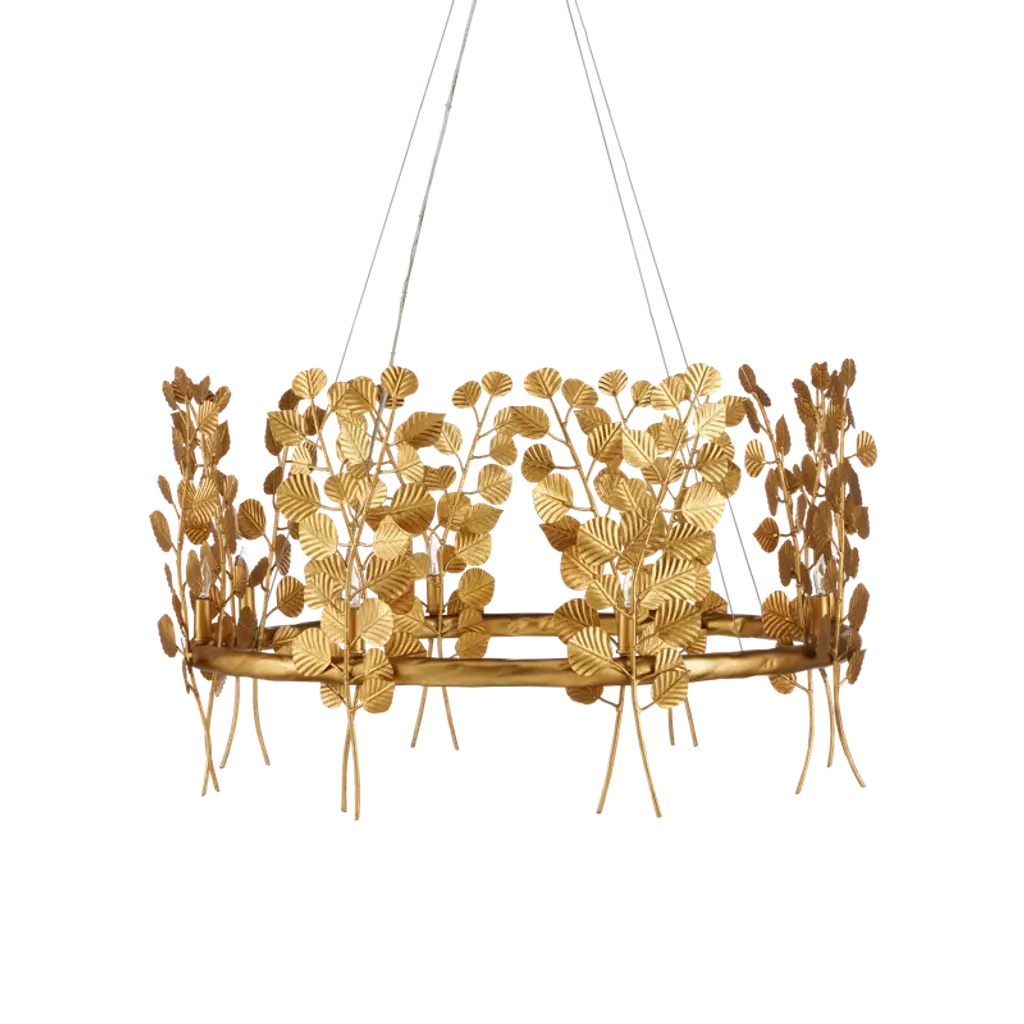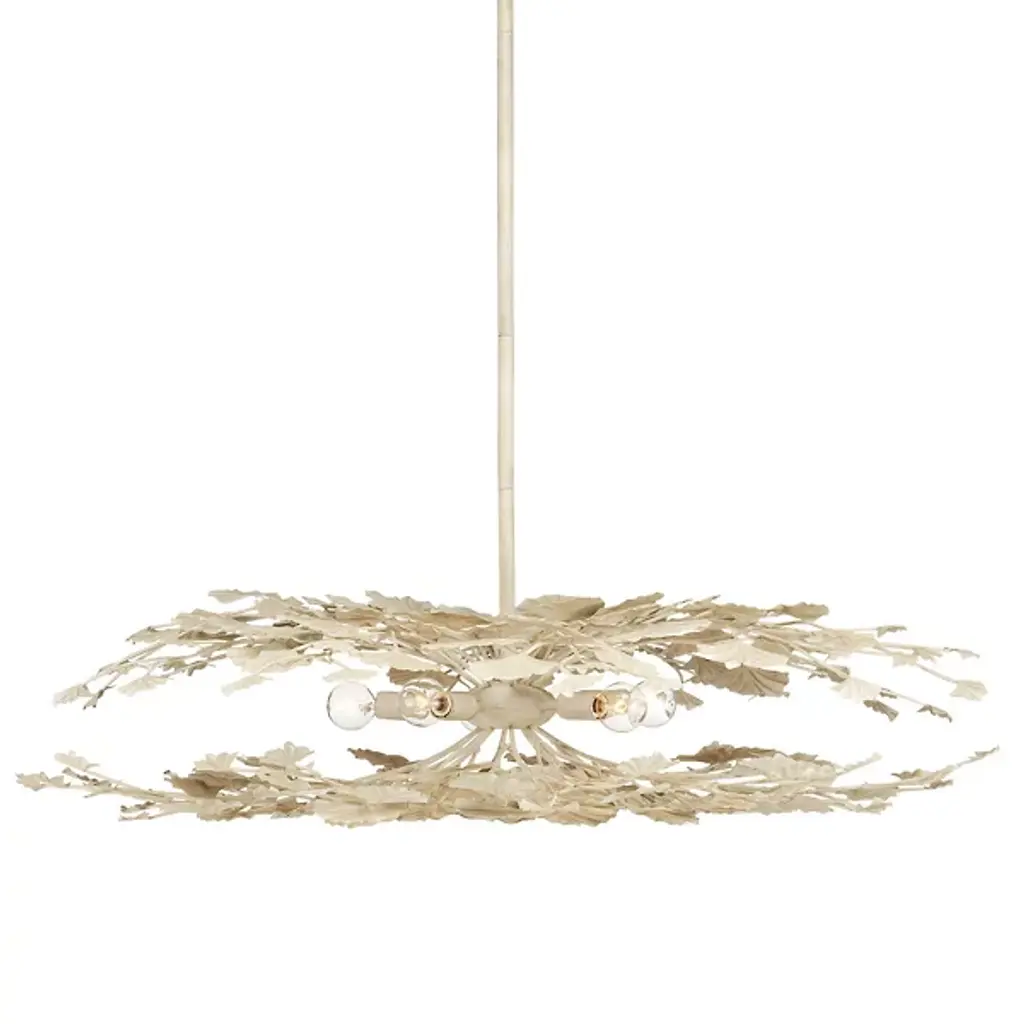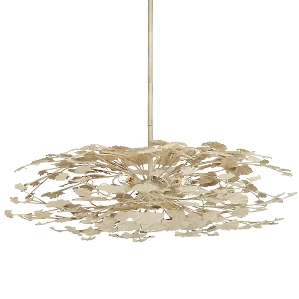Clarence Mallari's creative inspiration from the Ginkgo leaf gave birth to the enchanting Maidenhair Semi-Flush Mount from Currey & Company. The flowing pattern of fan-shaped leaves captivates the eye, offering depth and beauty when viewed from below. The antique pearl finish on the shade emits a warm glow when illuminated, while the telescoping leaves create mesmerizing patterns on surrounding surfaces. This nature-inspired semi-flush mount is an ideal addition to biophilic projects, bringing the allure of the outdoors into any space.