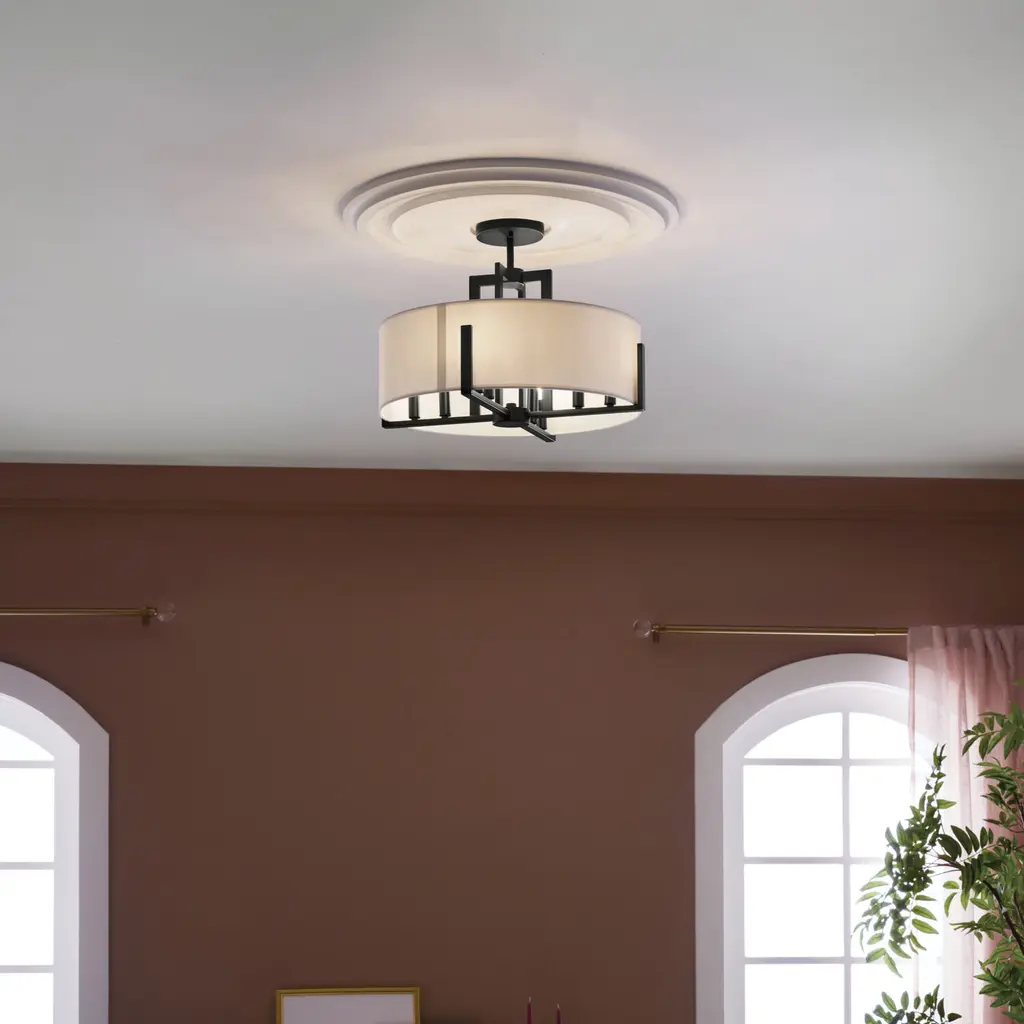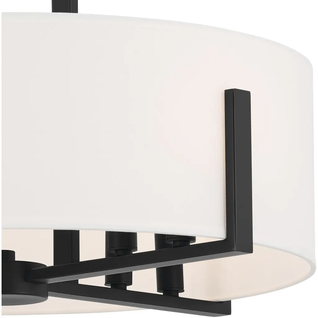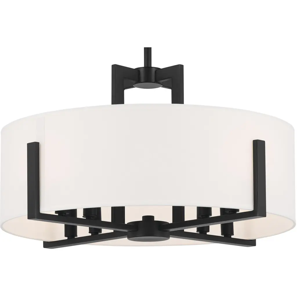 Malen 20 Inch 8 Light Semi-Flush with White Fabric Shade in Black