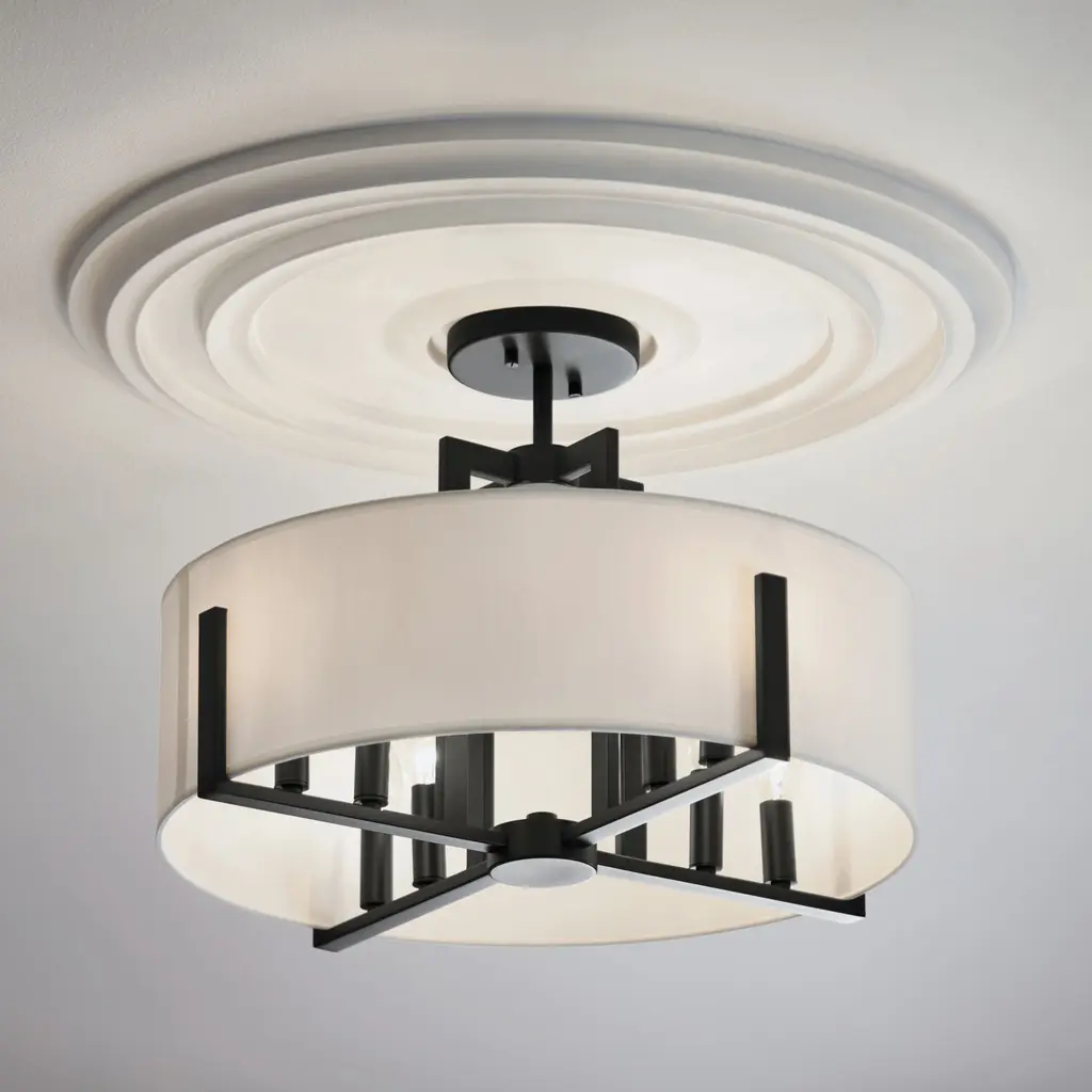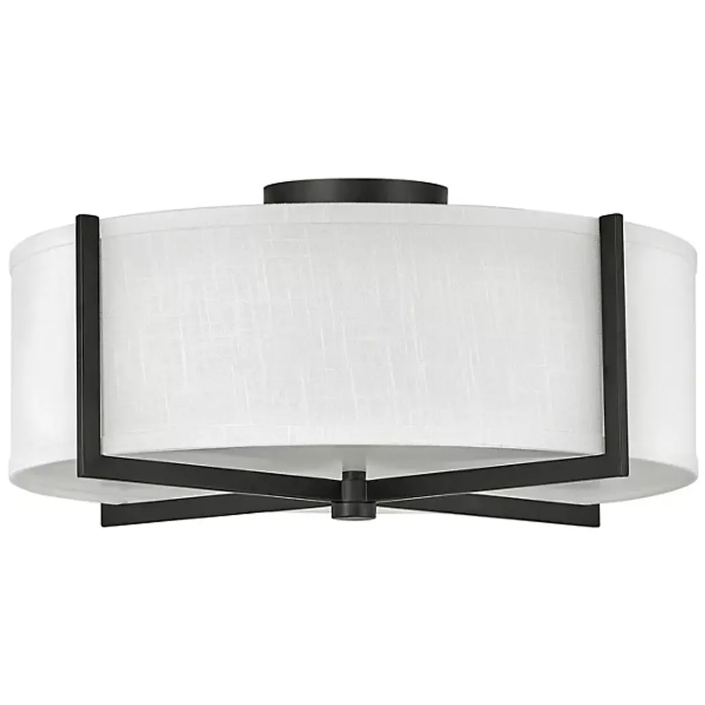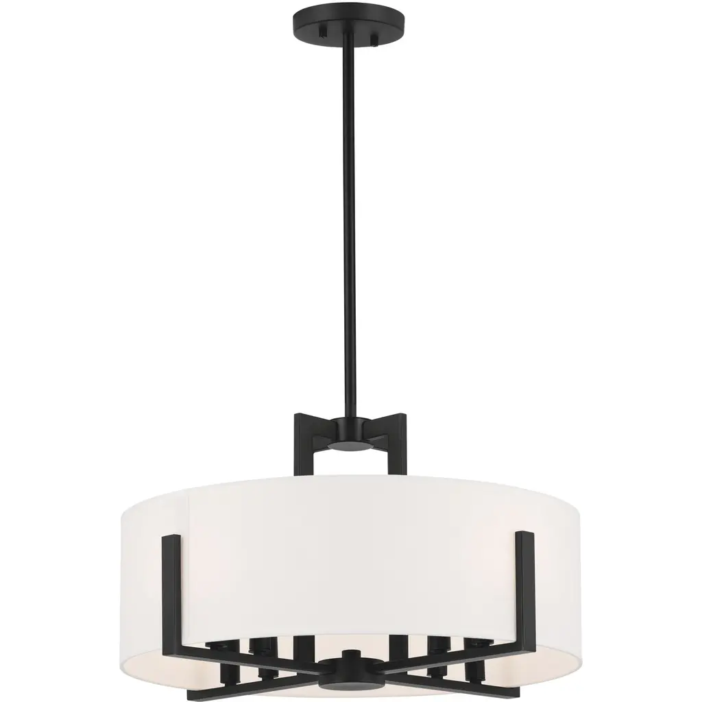 Malen 20 Inch 8 Light Semi-Flush with White Fabric Shade in Black