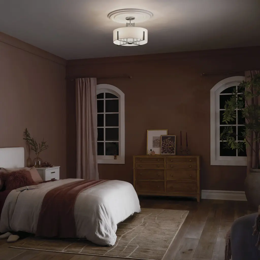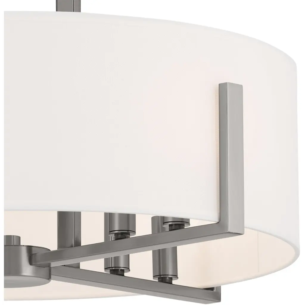 Malen 20 Inch 8 Light Semi-Flush with White Fabric Shade in Classic Pewter