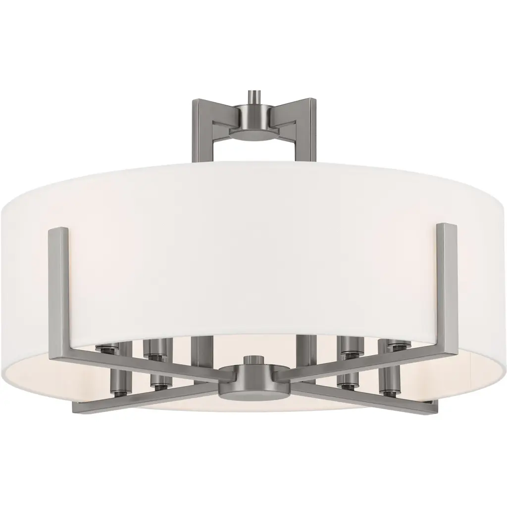 Malen 20 Inch 8 Light Semi-Flush with White Fabric Shade in Classic Pewter