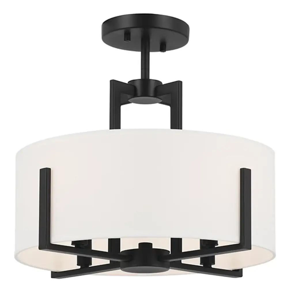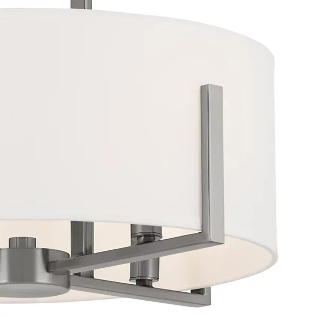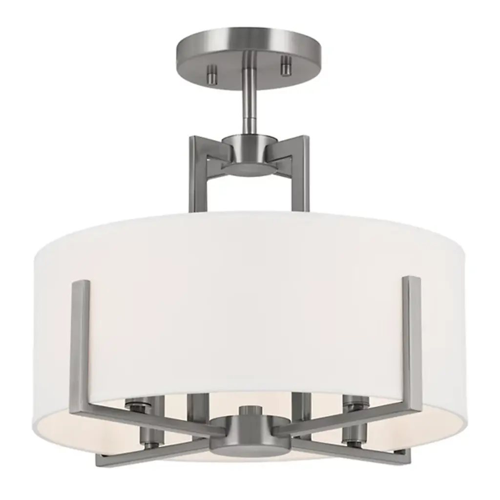 The Malen Semi Flushmount by Kichler is a stylish and elegant light fixture that will enhance the aesthetic of any room. The fixture features a simple yet modern design with a fabric drum shade held up by an internal metal framework that reaches up the sides of the shade. Inspired by the notion of holding and resting, this light fixture is sheer elegance.