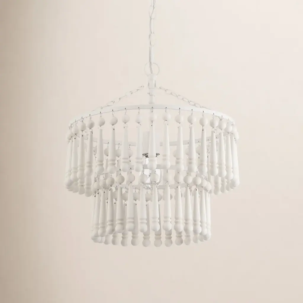 This chandelier has a natural, organic look with a rich combination of texture and materials. The frame is made from steel with two tiers of wooden beads in a classic, modern black finish. We love the play of wood against steel for an elevated, mixed-material look that pairs well with all sorts of different decor styles. Best of all, this versatile chandelier is safe to use in damp locations and compatible with dimmer switches, so you can use it to set the mood for showers and baths or add extra ambiance to your covered porch.