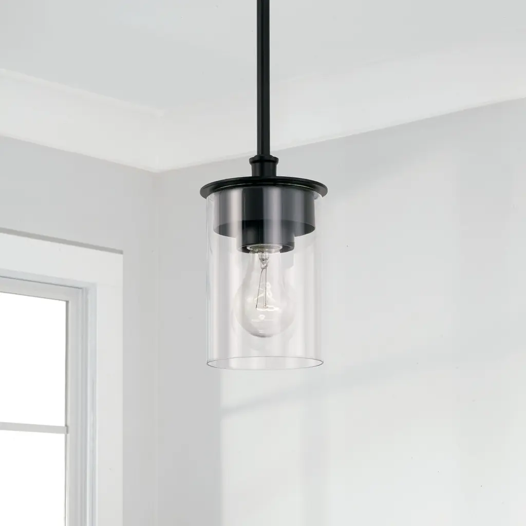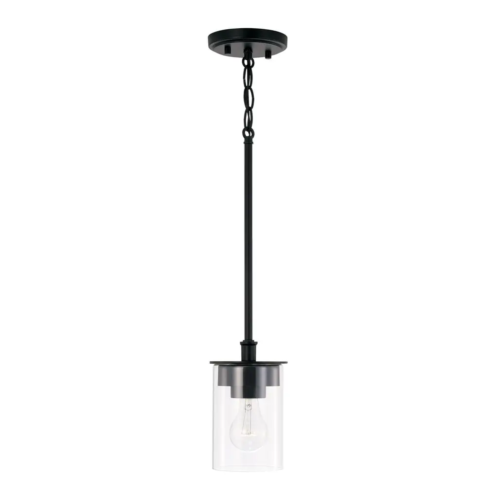 Clean lines and modern forms create the Mason Mini Dual Mount for Homeplace. Whether hung as a pendant or semi-flush, the Matte Black finish accents the designer details for the ultimate style versatility.