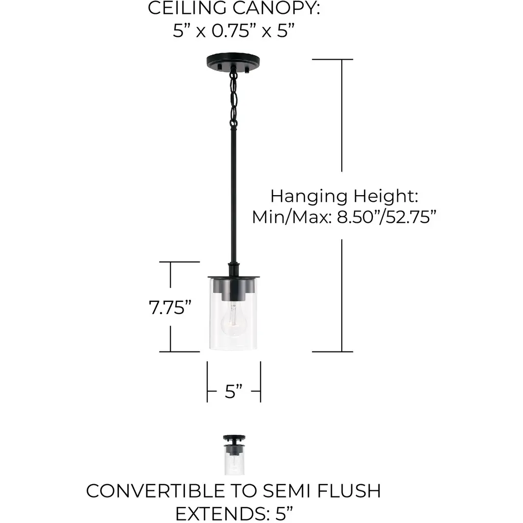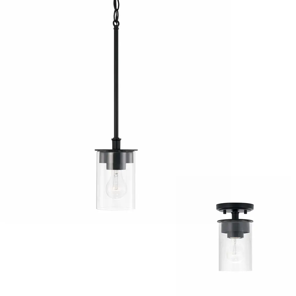 Mason 1 Light 5 Inch Matte Black Semi-Flush Mount Ceiling Light, Convertible Dual Mount