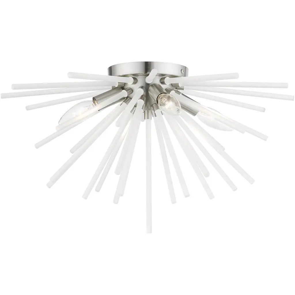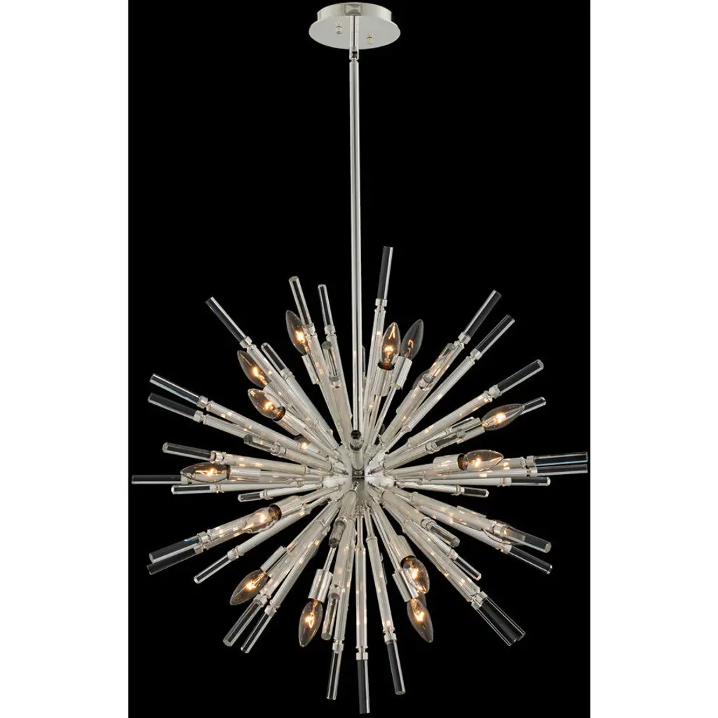 A dazzling burst of Clear glass rods extend from a classic sputnik shape finished in a bright Polished Chrome or warm Satin Brass. Available in two sizes of pendants and as a ceiling fixture, this unique look is a statement piece designed to attract attention. Canopy Included: Yes Canopy Diameter: 6.00 Dimmable: Yes Shade Included: Yes