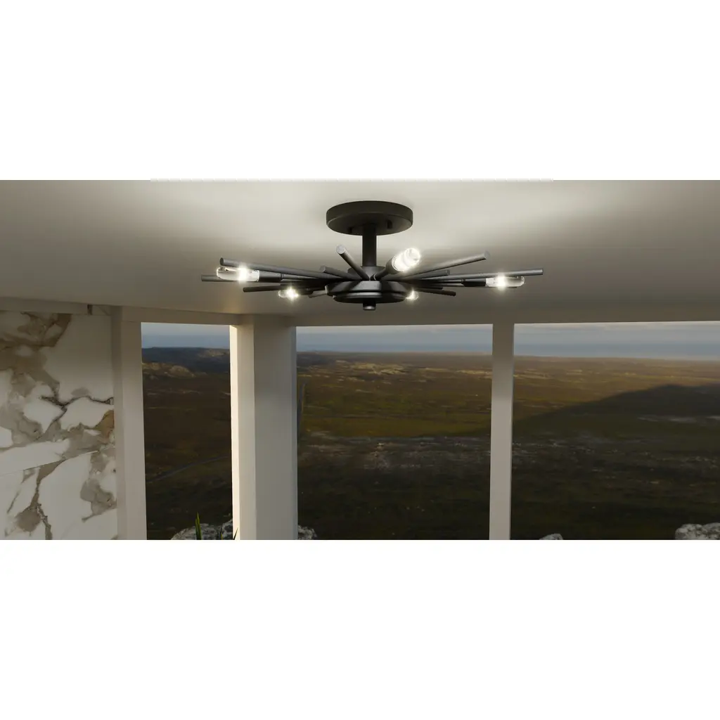 The Mesquite semi-flush mount radiates modern style with its geometric sputnik design and choice of matte black or weathered brass finish. Hang this versatile piece in a variety of spaces including a bedroom, hallway, home office , or living room. Pair with vintage filament bulbs for an added element of flair.