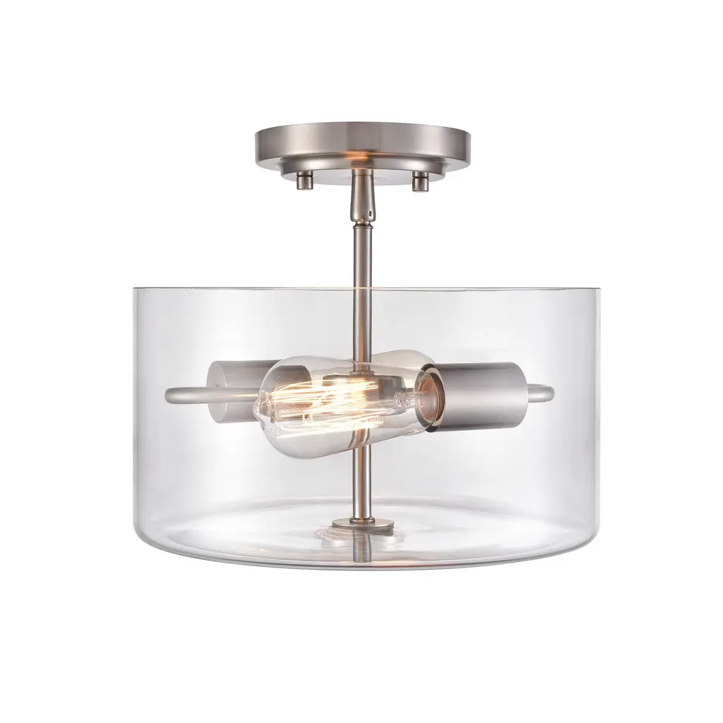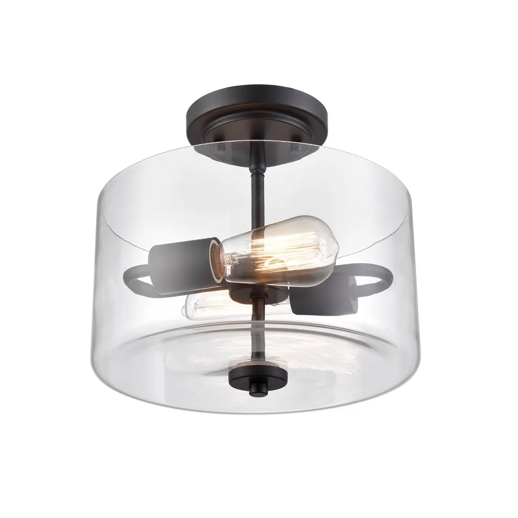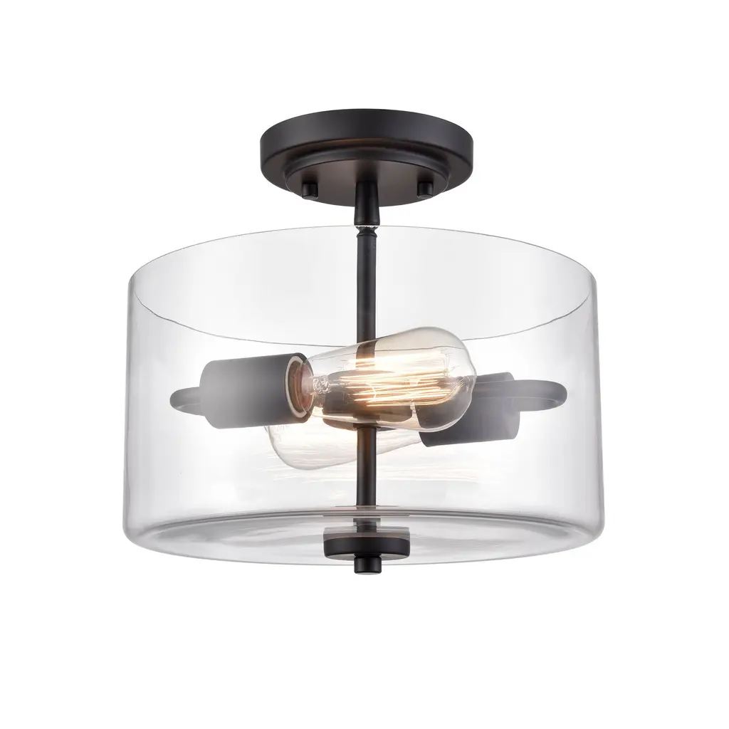 Striking industrial design meets the sumptuous style of the Verlana Collection. Whether in chrome or matte black finish, the sleek lines of the fixtures are perfectly complemented by the clear glass, cylindrical shades.There is standard overhead lighting, and then there are design choices that take overhead lighting to a whole new level. Semi-flush fixtures create design opportunities and creative innovative lighting solutions for any room. Perfect to light up your living room, bedroom and more