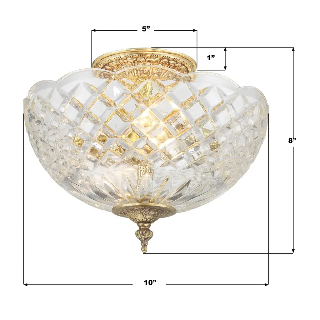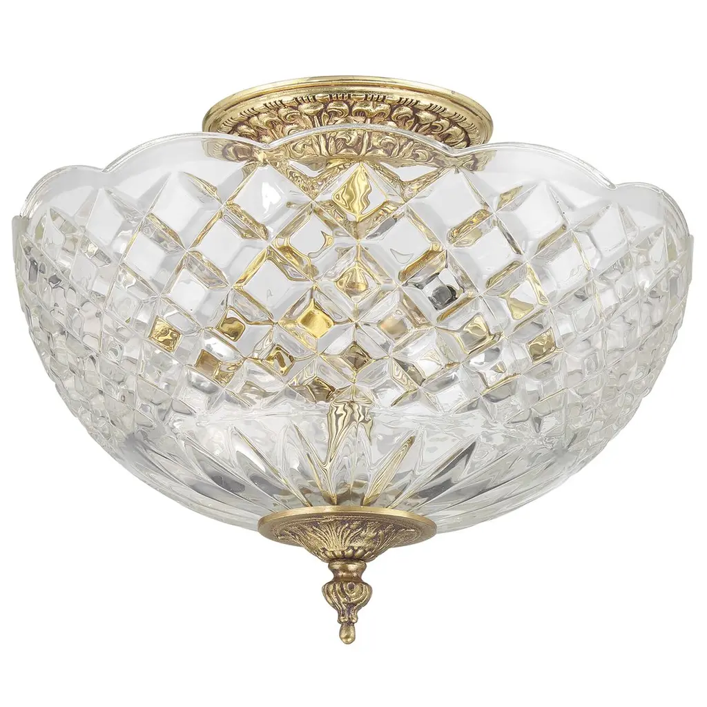 Milton 2-light Semi Flush Mount, Olde Brass/crystal