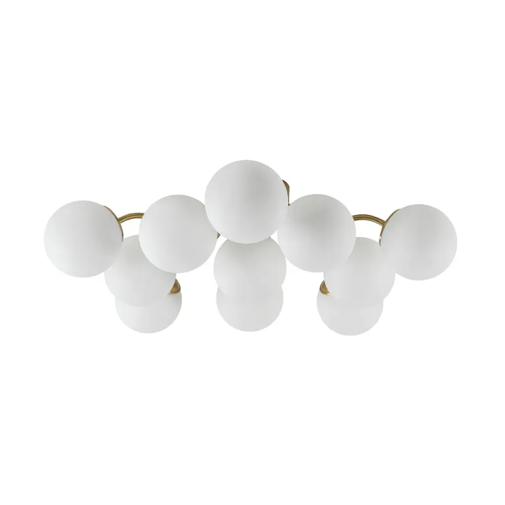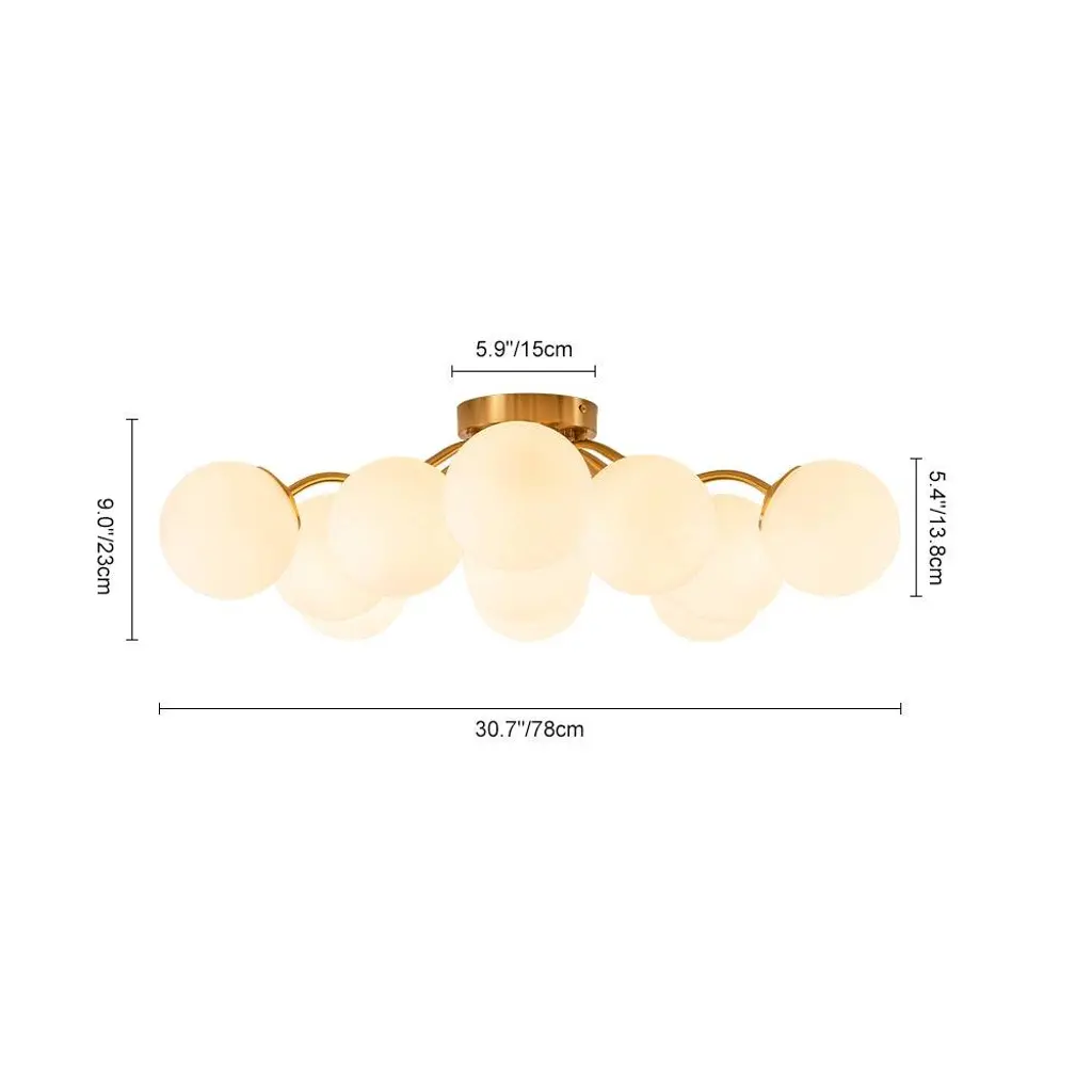 Modern 11-Light Frosted Glass Globe Wavy Arm Sputnik Semi-Flush Mount - 30.7in - Brass