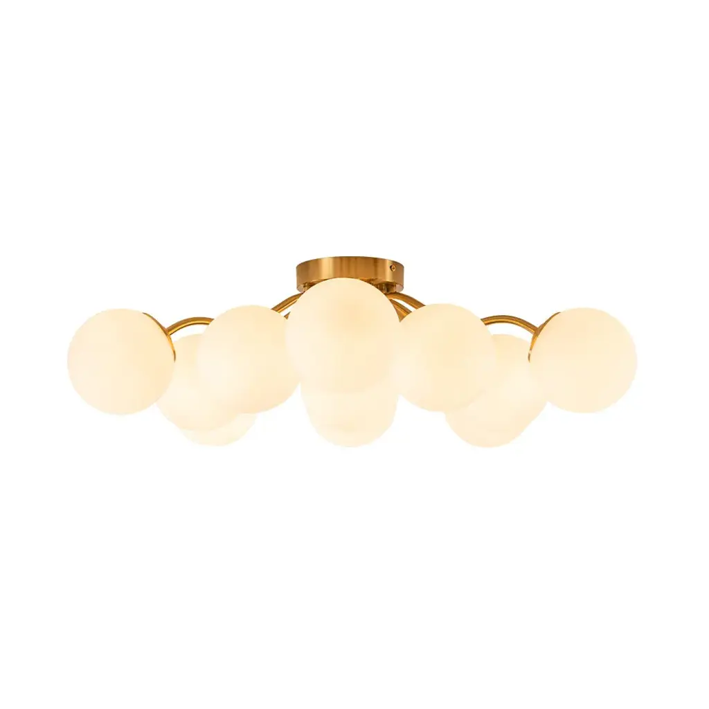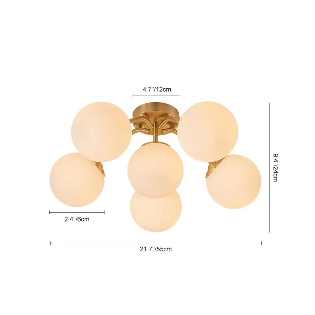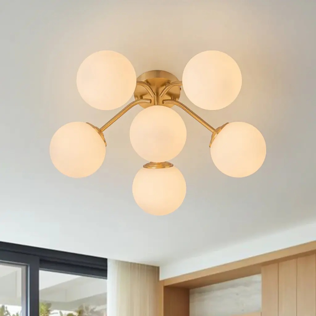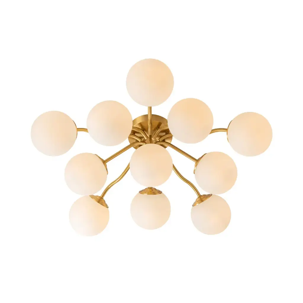 With exquisite craftsmanship, our brass frosted glass globe wavy arm sputnik semi-flush mount ceiling light illuminates your space without effort! It blends mid-century modern aesthetics and contemporary design, perfect for adding a touch of sophistication to any room. The fixture features a central brushed brass canopy that supports multiple wavy arms, each gracefully extending in a different direction like a celestial starburst. Adorning these arms are frosted glass globes that diffuse light softly, casting a warm, ambient glow throughout your living area. The semi-flush mount design ensures it's suitable for both low and high ceilings, making it an ideal choice for living rooms, dining rooms, hallways, entrances, nursery rooms or bedrooms. Features:Dimensions:6-Light11-Light 16-Light