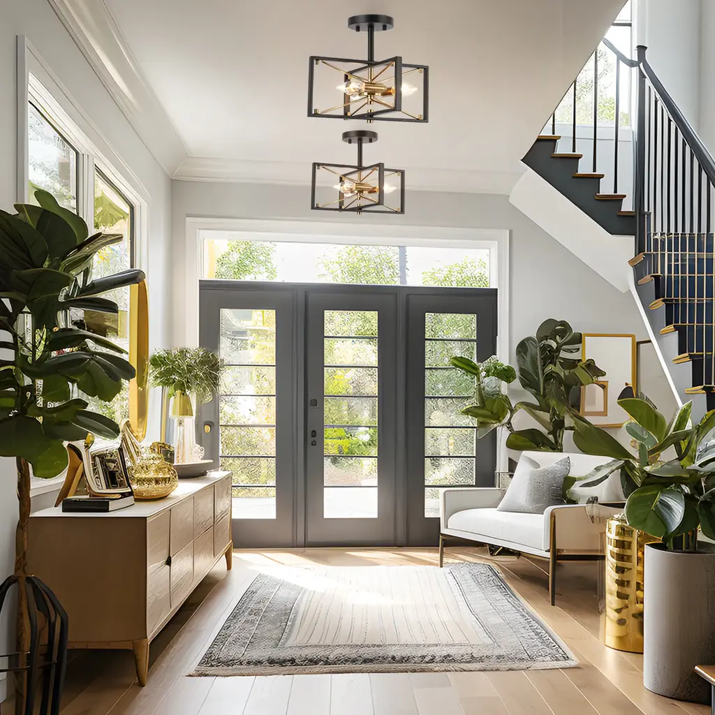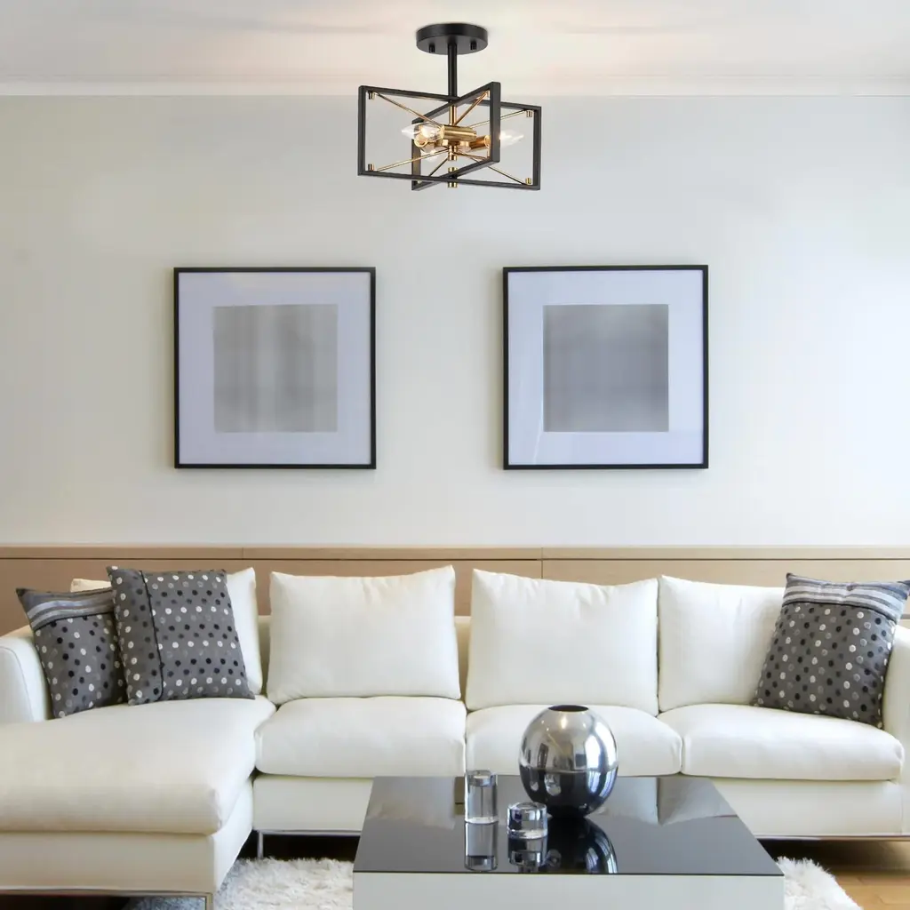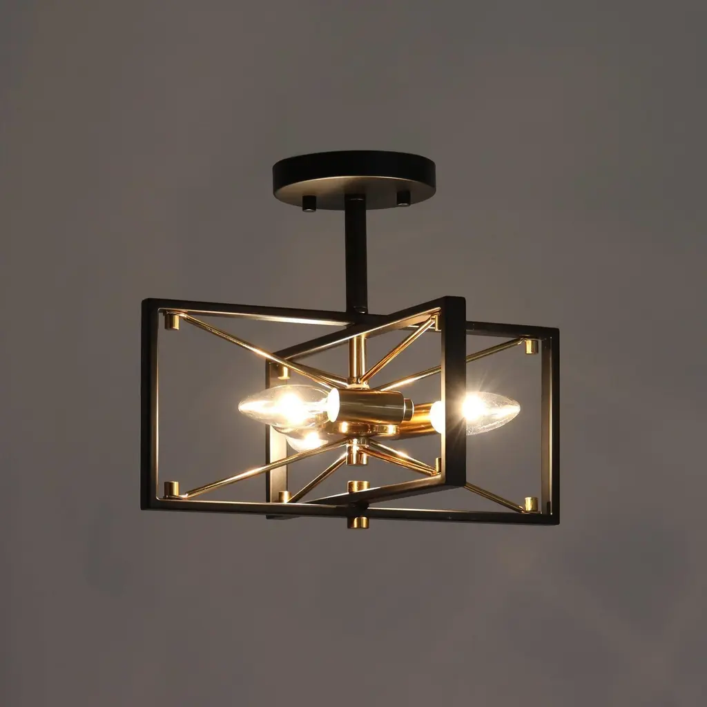 A contemporary design with versatile appeal, this cage ceiling light adds subdued sparkle and vibrant style. This semi-flush mount light fixture features a simple, modern glam style with a sputnik light holder design that complements any decor. The protective matte black and electroplated gold-finished steel will look great and last for years to come.Features:Made of metalMatte black and electroplated brass finishModern, farmhouse, mid-century modern, industrial, glam styleMetal cage semi-flush ceiling lightSputnik starburst designRequires three 40-watt E12 type B light bulbs (not included)Fully dimmable: Compatible with dimmer switch (not included)ETL listed Include all mounting accessories for quick installationHardwired installation2 years limited warrantyDimensions:Overall size: 13" L x 12.2" L x 10.5" HCanopy size: 4.7" Dia x 1" H