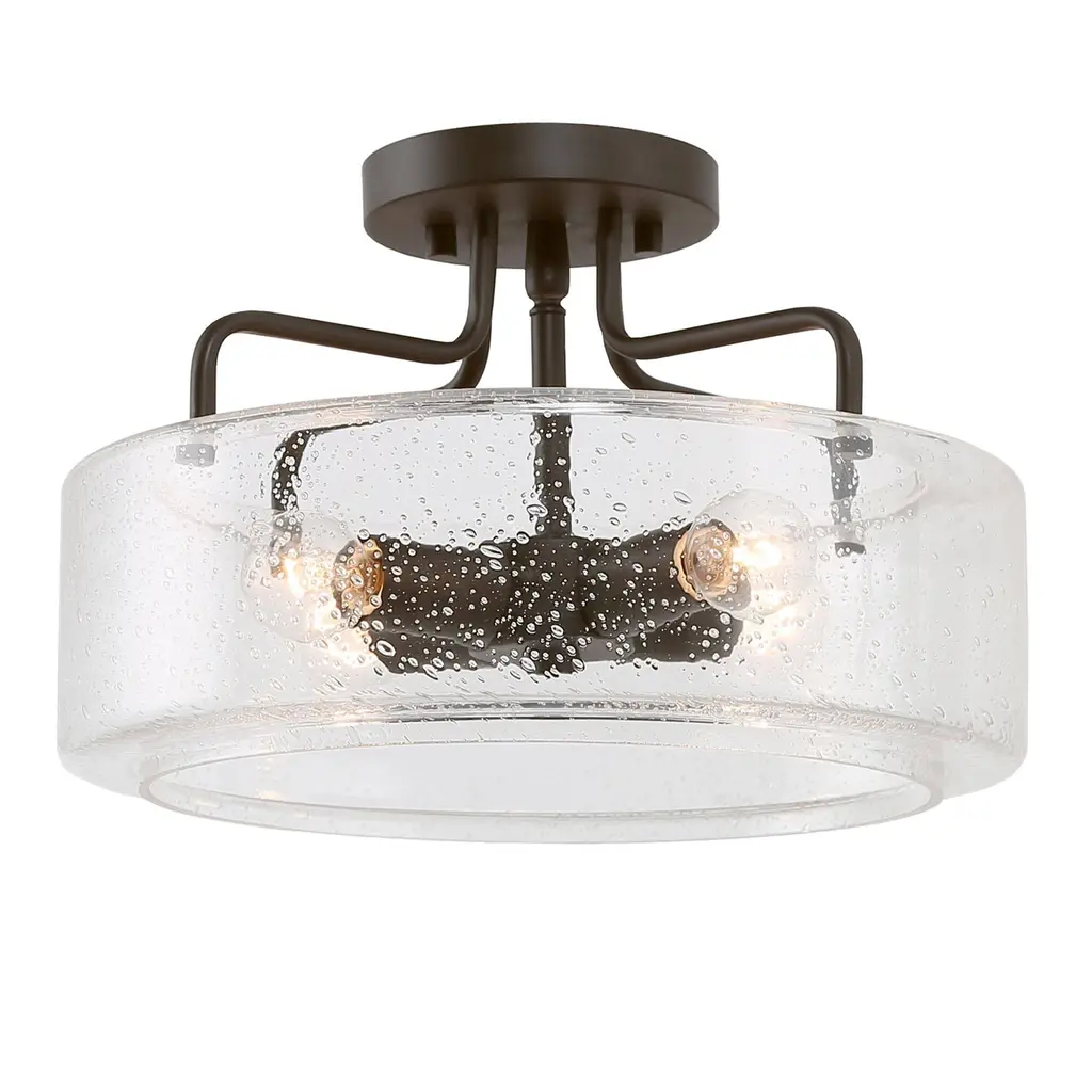 Modern Farmhouse 4-Light Semi-Flush Mount Ceiling Lights For Kitchen - W12"x H8" - Black