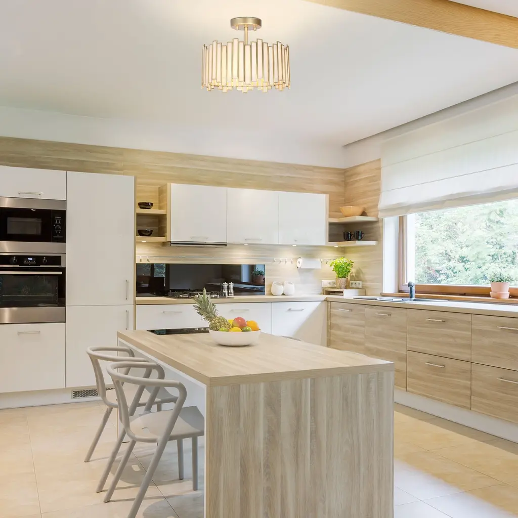 Modern Gold 3-Light Chandelier Metal Drum Semi-Flush Mount For Dining Room - 12.6" D X 10.2" H - 12.6" D X 10.2" H - Gold