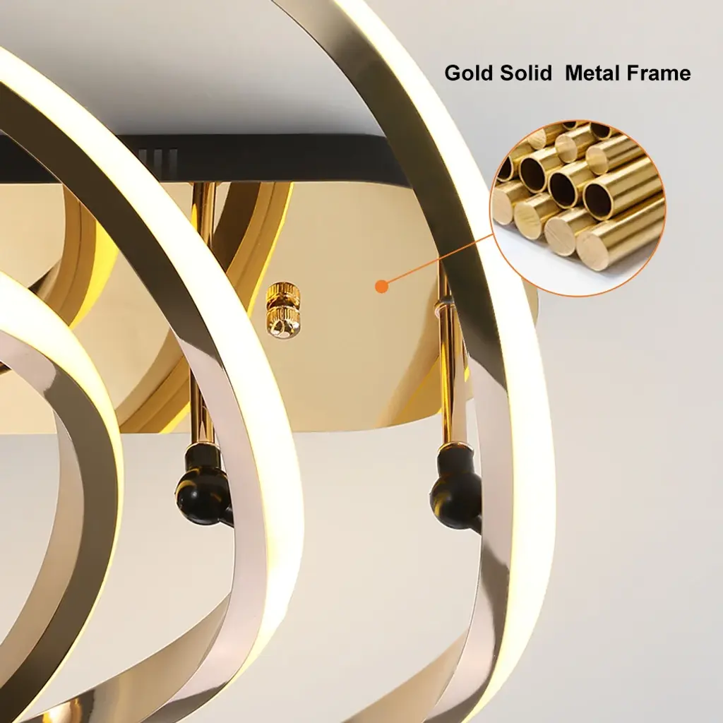 This gold semi flush mount light is designed in modern style, just like several waves lying on your ceiling, looking luxurious and elegant! Mask light transmission strong, giving you a different visual experience. Constructed from high-quality aluminum, the ceiling light looks glamorous and classy, importantly, it is suitable for indoor decoration, such as living room, dining room, bedroom, office, etc. Plus, LED light can protect your and your child’s eyes from glare lighting.