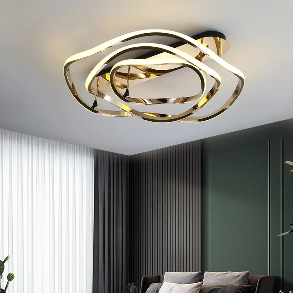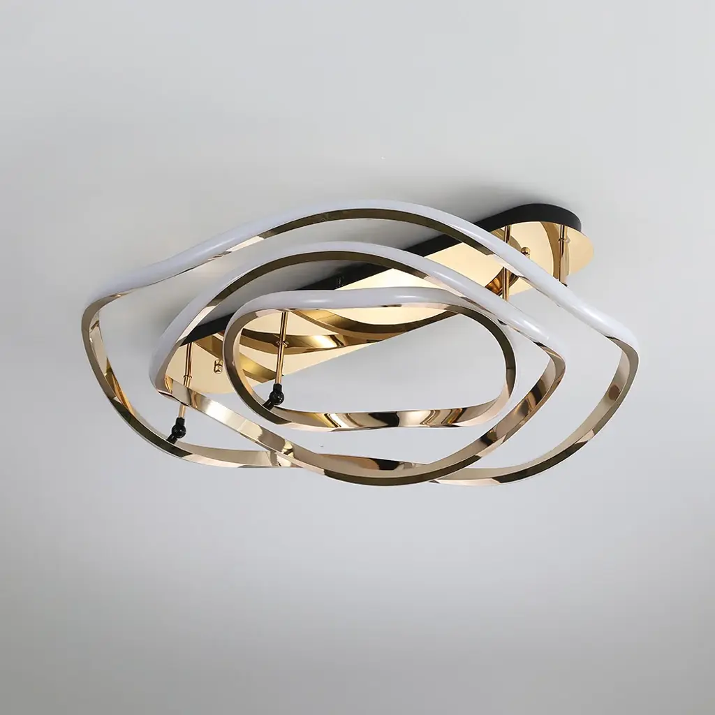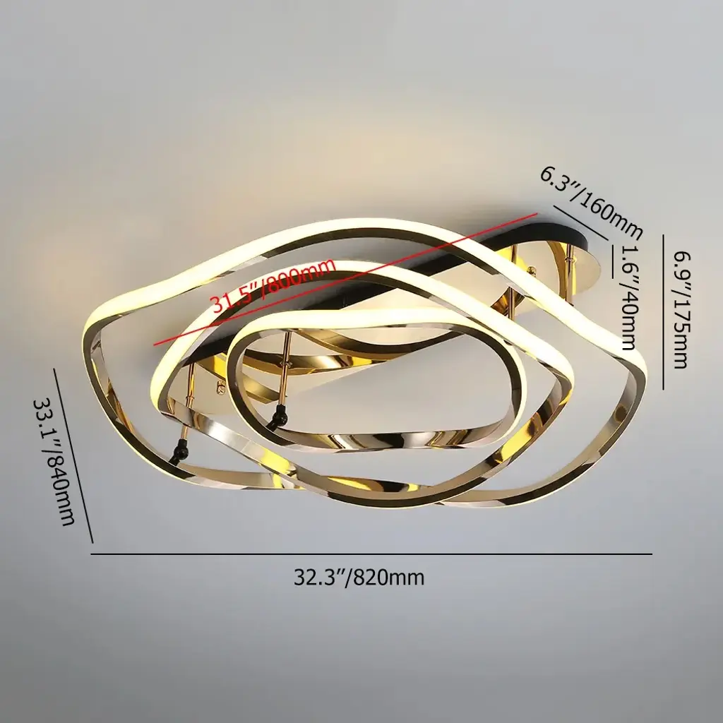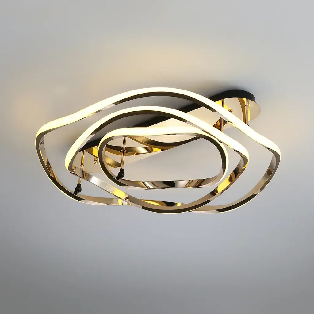 Modern Gold Led Geometric Semi Flush Mount Light Wavy Design Metal