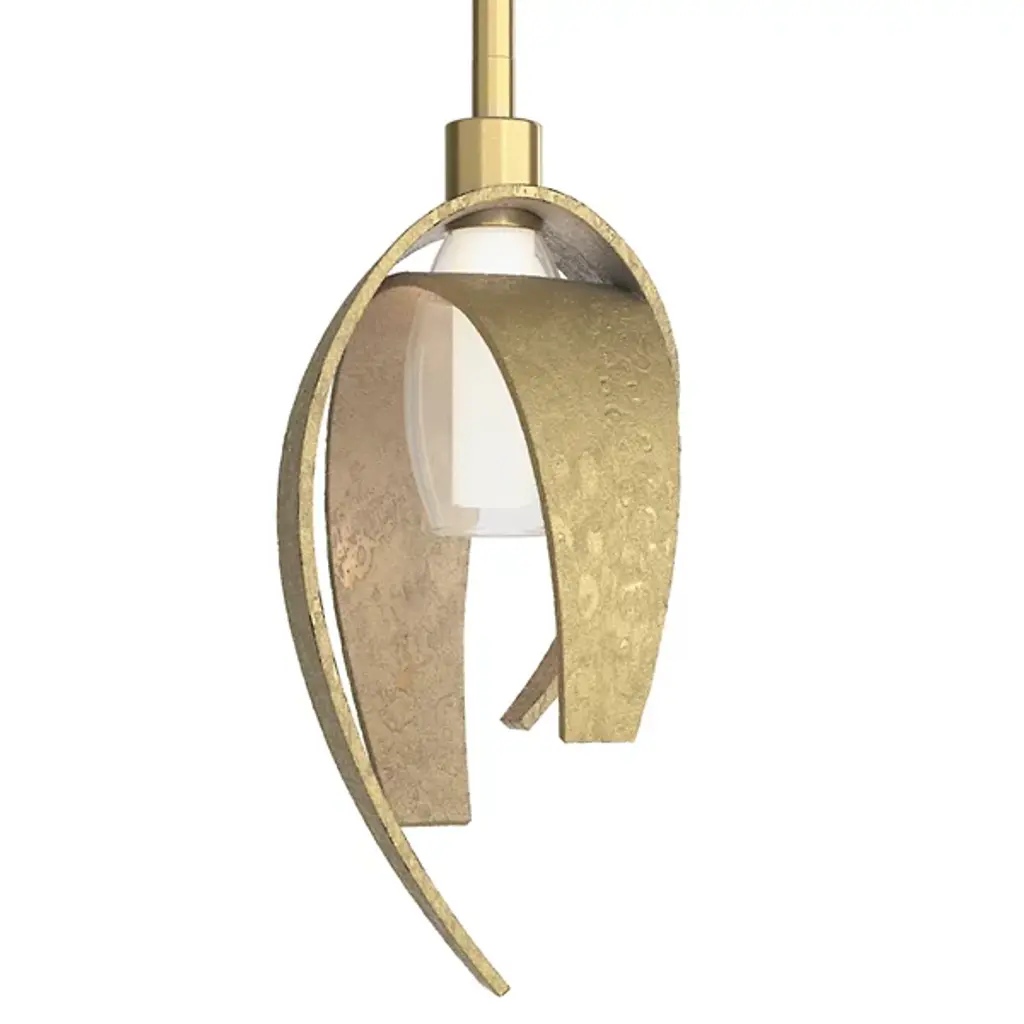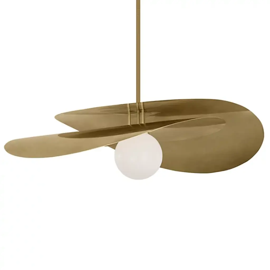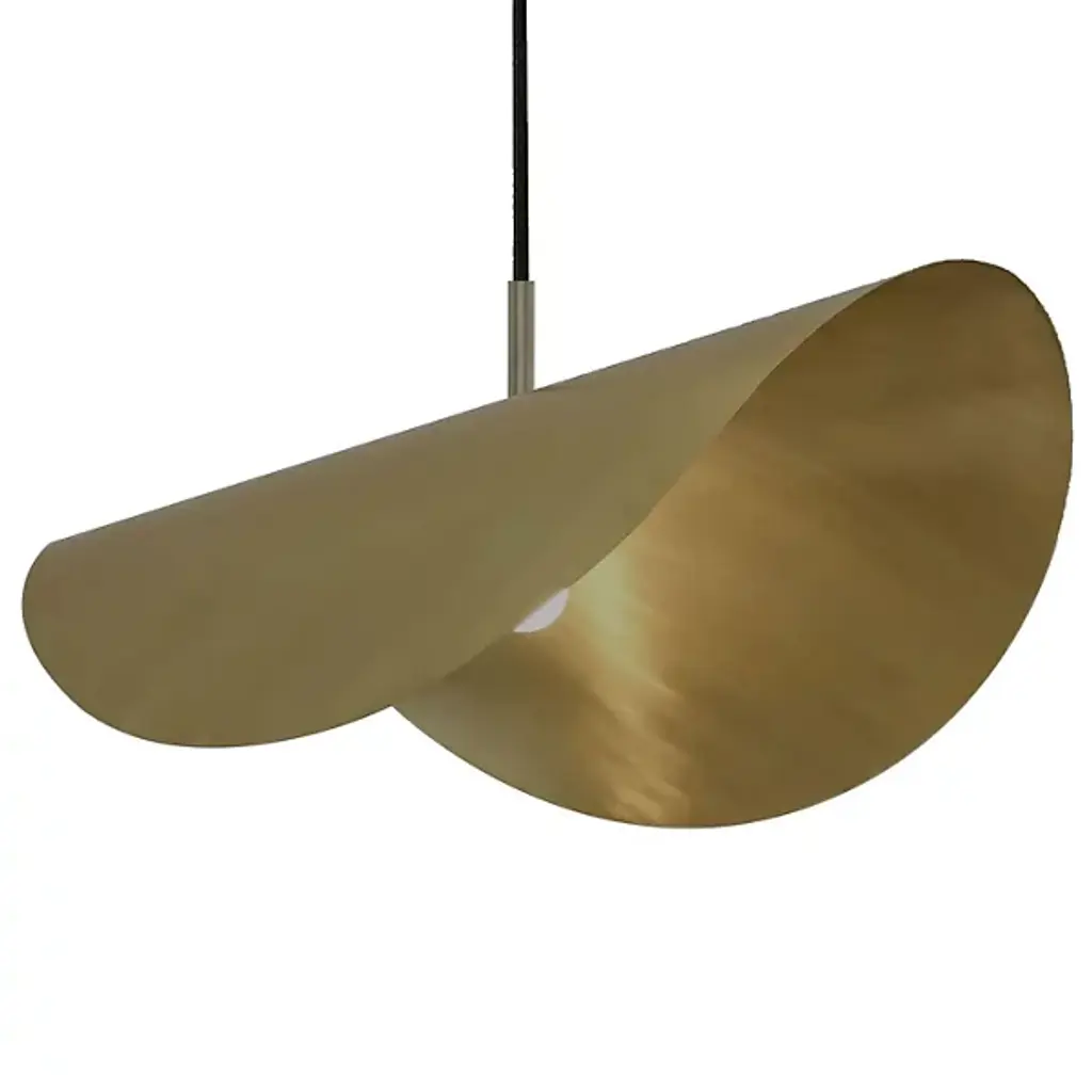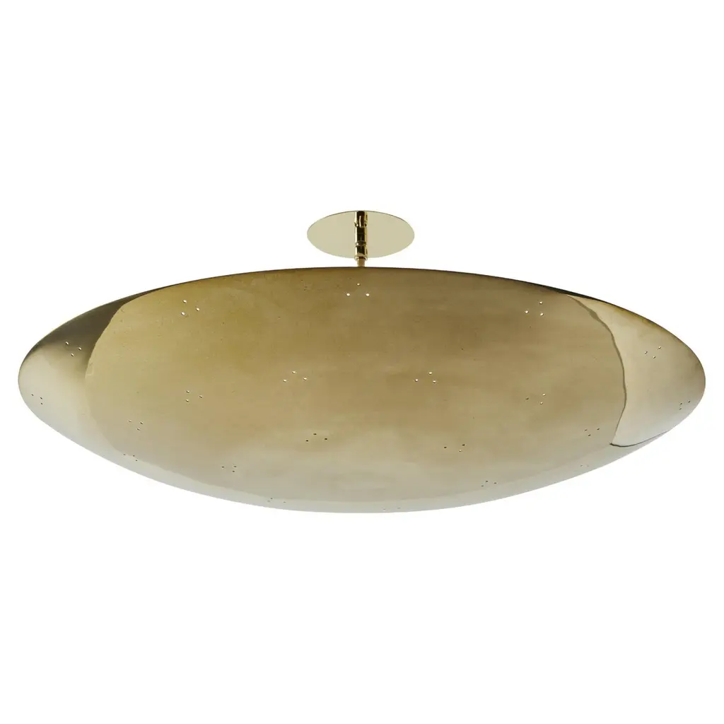 The Moja Semi-Flushmount from Dounia Home fuses artisanal Moroccan methods with a clean-surfaced contemporary character. Its curving metalwork is made by hand in Morocco to evoke the winding curves of a coastline, suspending a disc shade that drapes across inner lamping. The circular canopy and slim stem support the shade and lamping, scattering a mix of downlight and reflected radiance below. The metal’s hand-finished texture uses imperfections to add character to its surroundings, adding a hint of complexity to the straightforward structure.